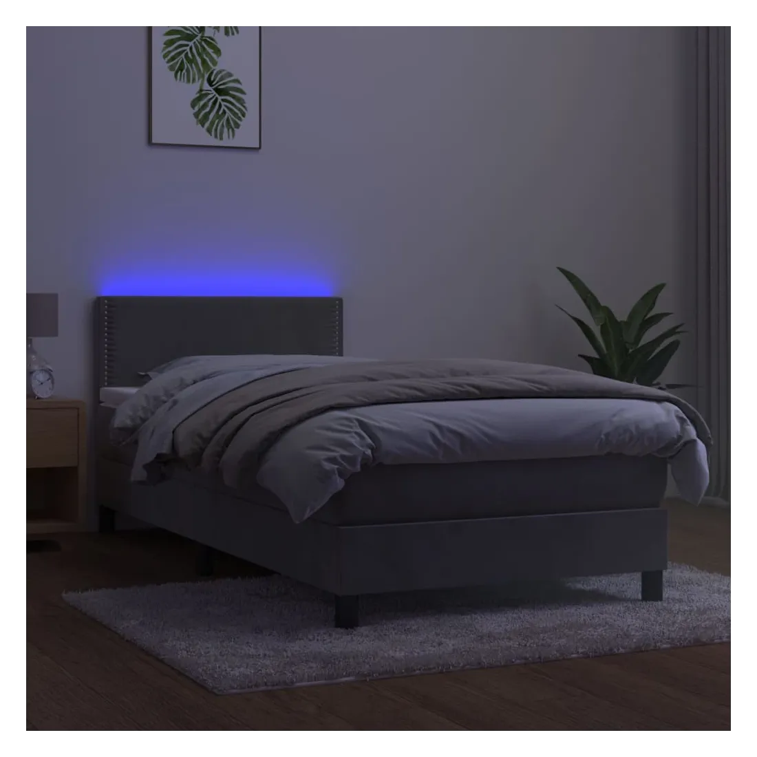 Sommier à lattes de lit avec matelas et LED Gris clair 90x190cm
