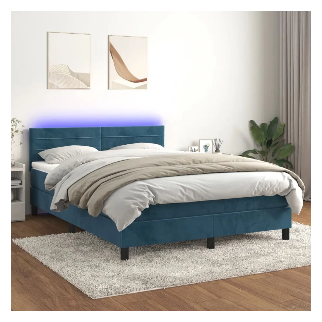 Utilisez ce sommier tapissier avec matelas et LED pour profiter d'un sommeil réparateur ! C'est le point central de votre chambre à coucher. Velours doux : le velours est un tissu doux et luxueux qui se reconnaît à son tas dense de fibres uniformément coupées qui ont une touche lisse. Le tissu en velours présente un toucher doux distinctif, ce qui le rend confortable au toucher.Tête de lit pratique : la tête de lit est réglable en hauteur selon vos préférences. La tête de lit vous offre un excellent soutien du dos lorsque vous êtes assis dans votre lit pour lire ou regarder la télévision.Bande LED colorée : apportez de l'éclairage dans l'obscurité avec des lumières LED colorées !Matelas à ressorts ensachés : le ressort ensaché individuel intégré est connu pour sa très haute qualité tout en assurant un haut niveau de durabilité et d'adaptabilité. Il peut absorber efficacement le bruit et les chocs causés par les sauts et les rotations.Protège-matelas doux pour la peau : le protège-matelas est recouvert d'un tissu résistant et doux pour la peau, ce qui le rend souple et confortable. Remarque :Pour des raisons d'hygiène, le matelas ne peut pas être retourné si l'emballage est retiré ou ouvert.Chaque produit est livré avec un manuel de montage dans la boîte pour un montage facile.Seule la partie avec un symbole de ciseaux peut être coupée et seule la partie avec l'USB continuera à fonctionner comme avant.Ce produit est doté d'un connecteur USB, mais la source d'alimentation certifiée de USB 5V n'est pas incluse.