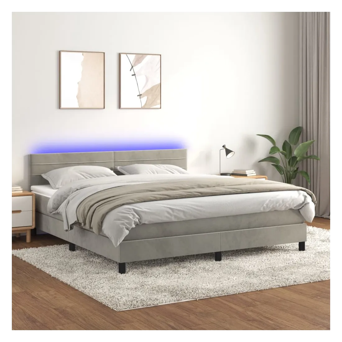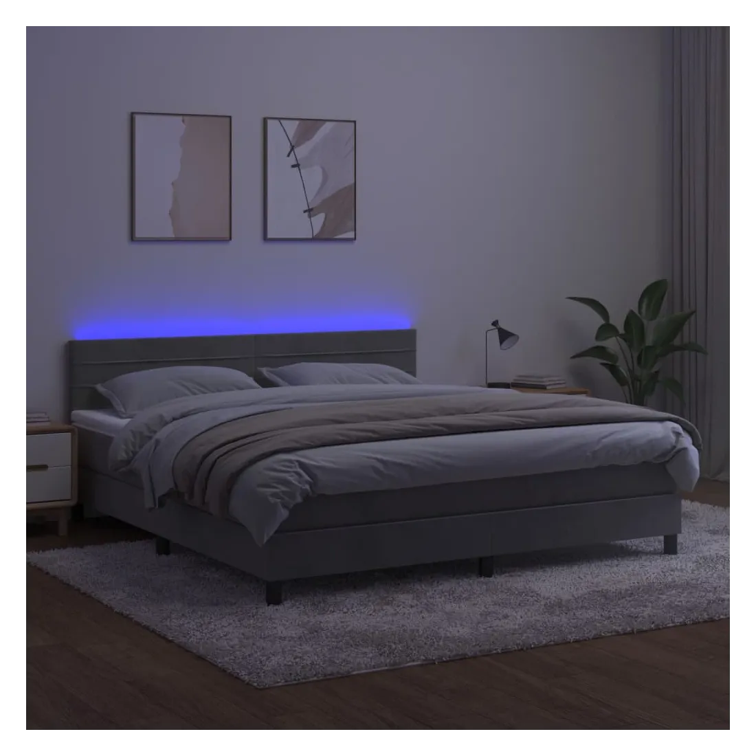 Sommier à lattes de lit avec matelas LED Gris clair 160x200 cm