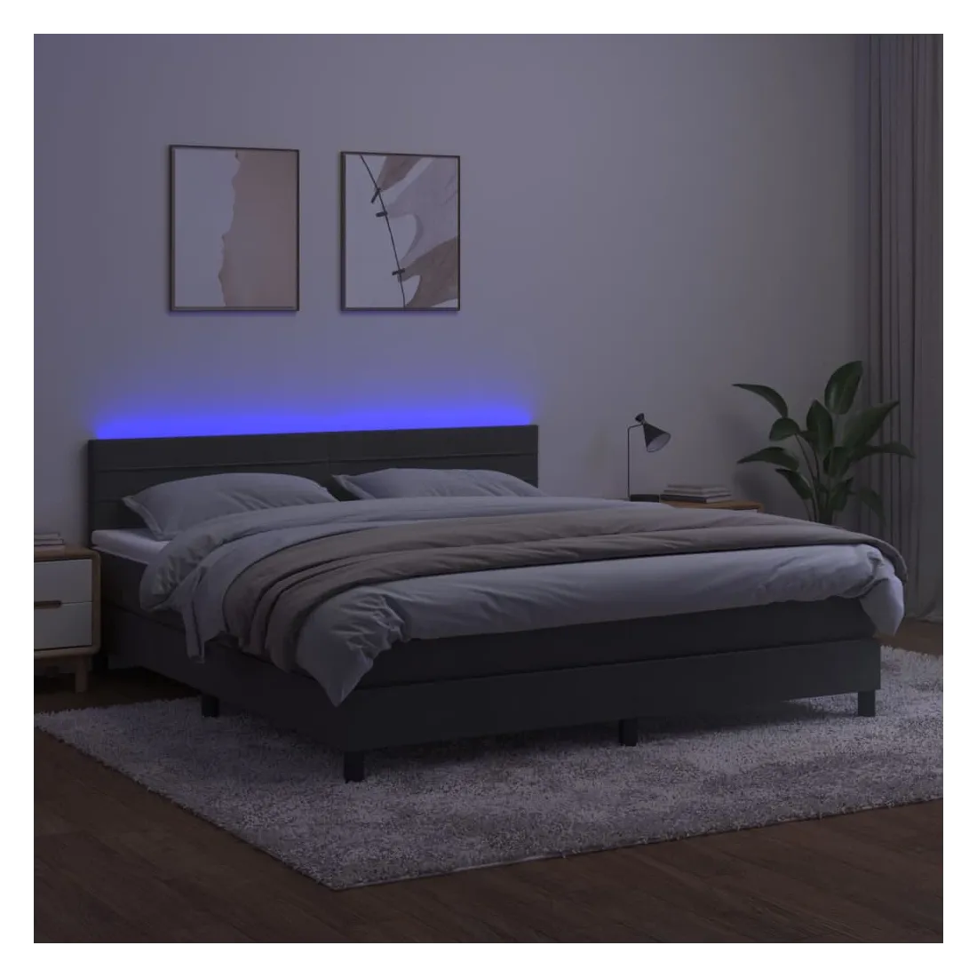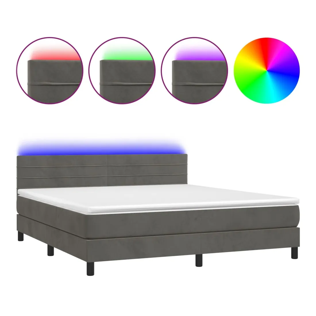 Utilisez ce sommier tapissier avec matelas et LED pour profiter d'un sommeil réparateur ! C'est le point central de votre chambre à coucher. Velours doux : le velours est un tissu doux et luxueux qui se reconnaît à son tas dense de fibres uniformément coupées qui ont une touche lisse. Le tissu en velours présente un toucher doux distinctif, ce qui le rend confortable au toucher.Tête de lit pratique : la tête de lit est réglable en hauteur selon vos préférences. La tête de lit vous offre un excellent soutien du dos lorsque vous êtes assis dans votre lit pour lire ou regarder la télévision.Bande LED colorée : apportez de l'éclairage dans l'obscurité avec des lumières LED colorées !Matelas à ressorts ensachés : le ressort ensaché individuel intégré est connu pour sa très haute qualité tout en assurant un haut niveau de durabilité et d'adaptabilité. Il peut absorber efficacement le bruit et les chocs causés par les sauts et les rotations.Protège-matelas doux pour la peau : le protège-matelas est recouvert d'un tissu résistant et doux pour la peau, ce qui le rend souple et confortable. Remarque :Pour des raisons d'hygiène, le matelas ne peut pas être retourné si l'emballage est retiré ou ouvert.Chaque produit est livré avec un manuel de montage dans la boîte pour un montage facile.Seule la partie avec un symbole de ciseaux peut être coupée et seule la partie avec l'USB continuera à fonctionner comme avant.Ce produit est doté d'un connecteur USB, mais la source d'alimentation certifiée de USB 5V n'est pas incluse.