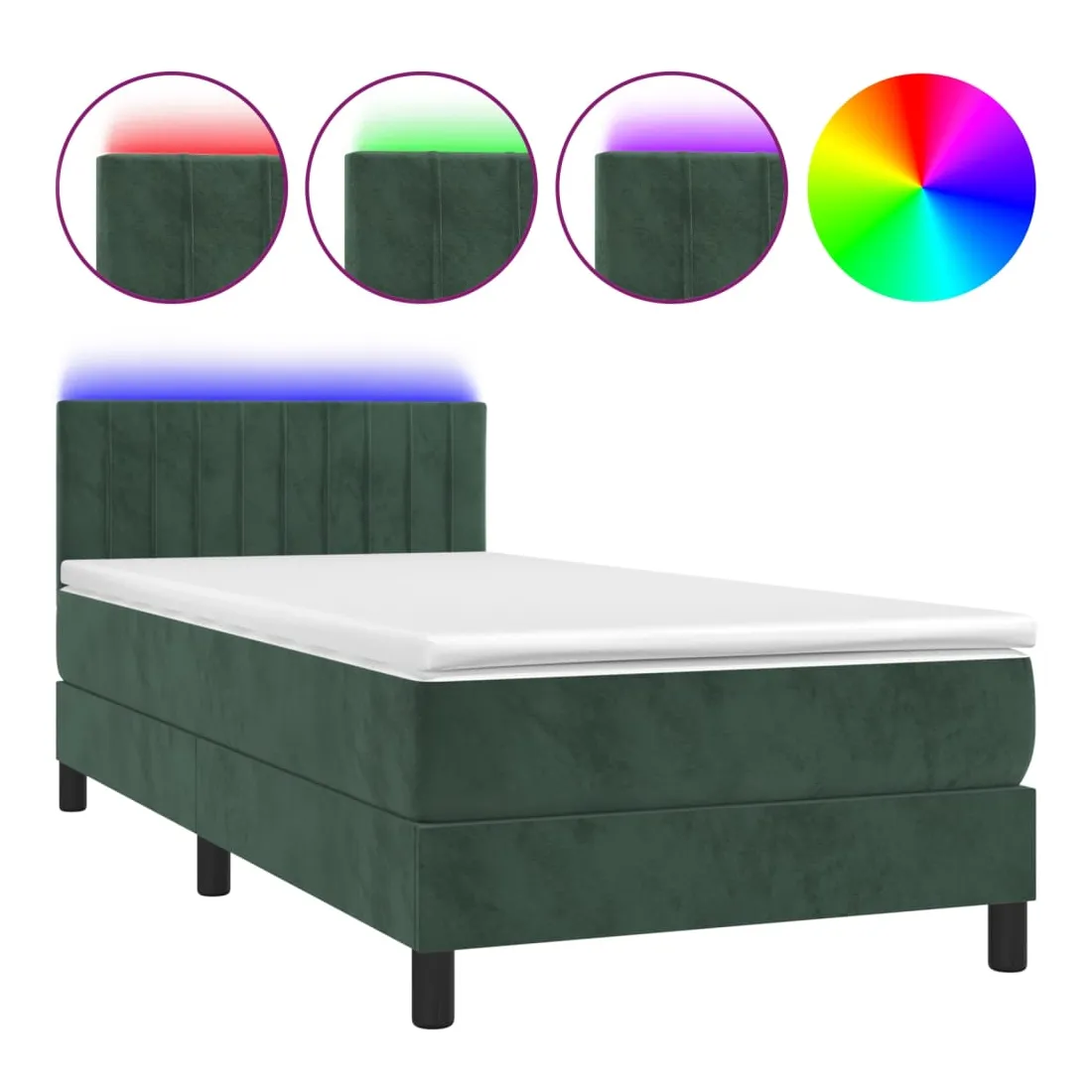 Sommier à lattes de lit et matelas et LED Vert foncé 90x200cm