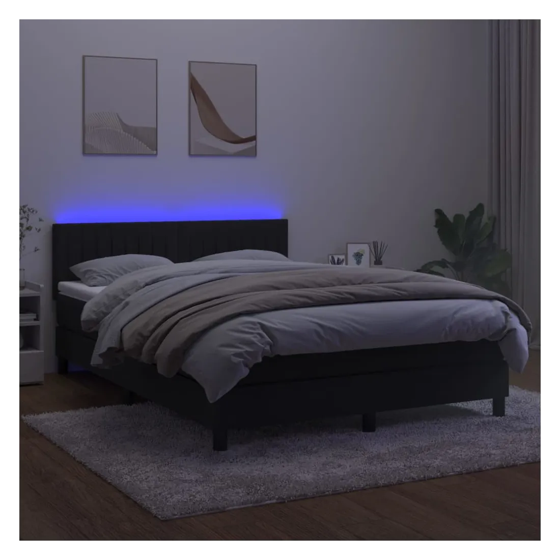 Utilisez ce sommier tapissier avec matelas et LED pour profiter d'un sommeil réparateur ! C'est le point central de votre chambre à coucher. Velours doux : le velours est un tissu doux et luxueux qui se reconnaît à son tas dense de fibres uniformément coupées qui ont une touche lisse. Le tissu en velours présente un toucher doux distinctif, ce qui le rend confortable au toucher.Tête de lit pratique : la tête de lit est réglable en hauteur selon vos préférences. La tête de lit vous offre un excellent soutien du dos lorsque vous êtes assis dans votre lit pour lire ou regarder la télévision.Bande LED colorée : apportez de l'éclairage dans l'obscurité avec des lumières LED colorées !Matelas à ressorts ensachés : le ressort ensaché individuel intégré est connu pour sa très haute qualité tout en assurant un haut niveau de durabilité et d'adaptabilité. Il peut absorber efficacement le bruit et les chocs causés par les sauts et les rotations.Protège-matelas doux pour la peau : le protège-matelas est recouvert d'un tissu résistant et doux pour la peau, ce qui le rend souple et confortable. Remarque :Pour des raisons d'hygiène, le matelas ne peut pas être retourné si l'emballage est retiré ou ouvert.Chaque produit est livré avec un manuel de montage dans la boîte pour un montage facile.Seule la partie avec un symbole de ciseaux peut être coupée et seule la partie avec l'USB continuera à fonctionner comme avant.Ce produit est doté d'un connecteur USB, mais la source d'alimentation certifiée de USB 5V n'est pas incluse.