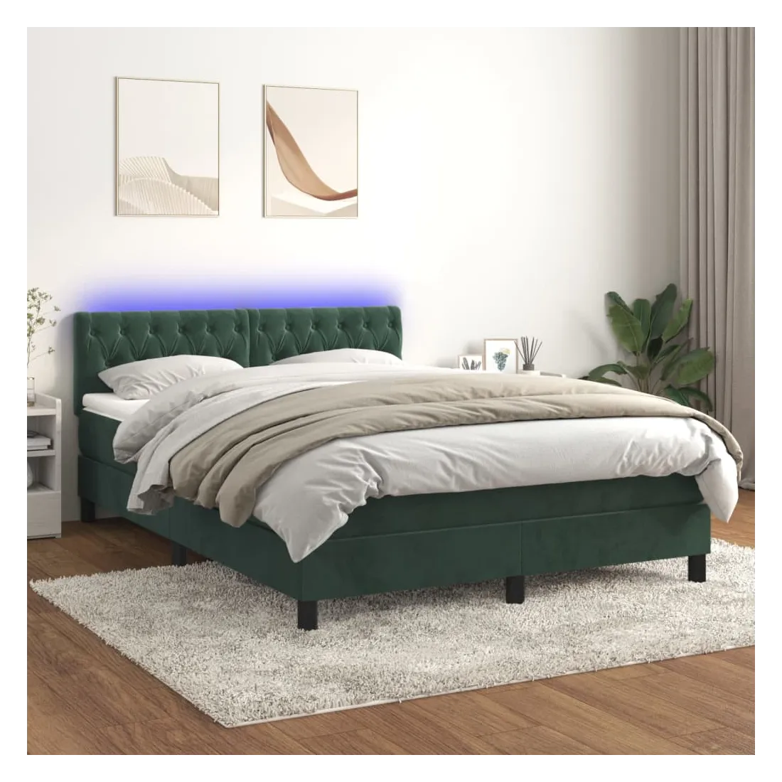 Sommier à lattes de lit avec matelas LED Vert foncé 140x190 cm