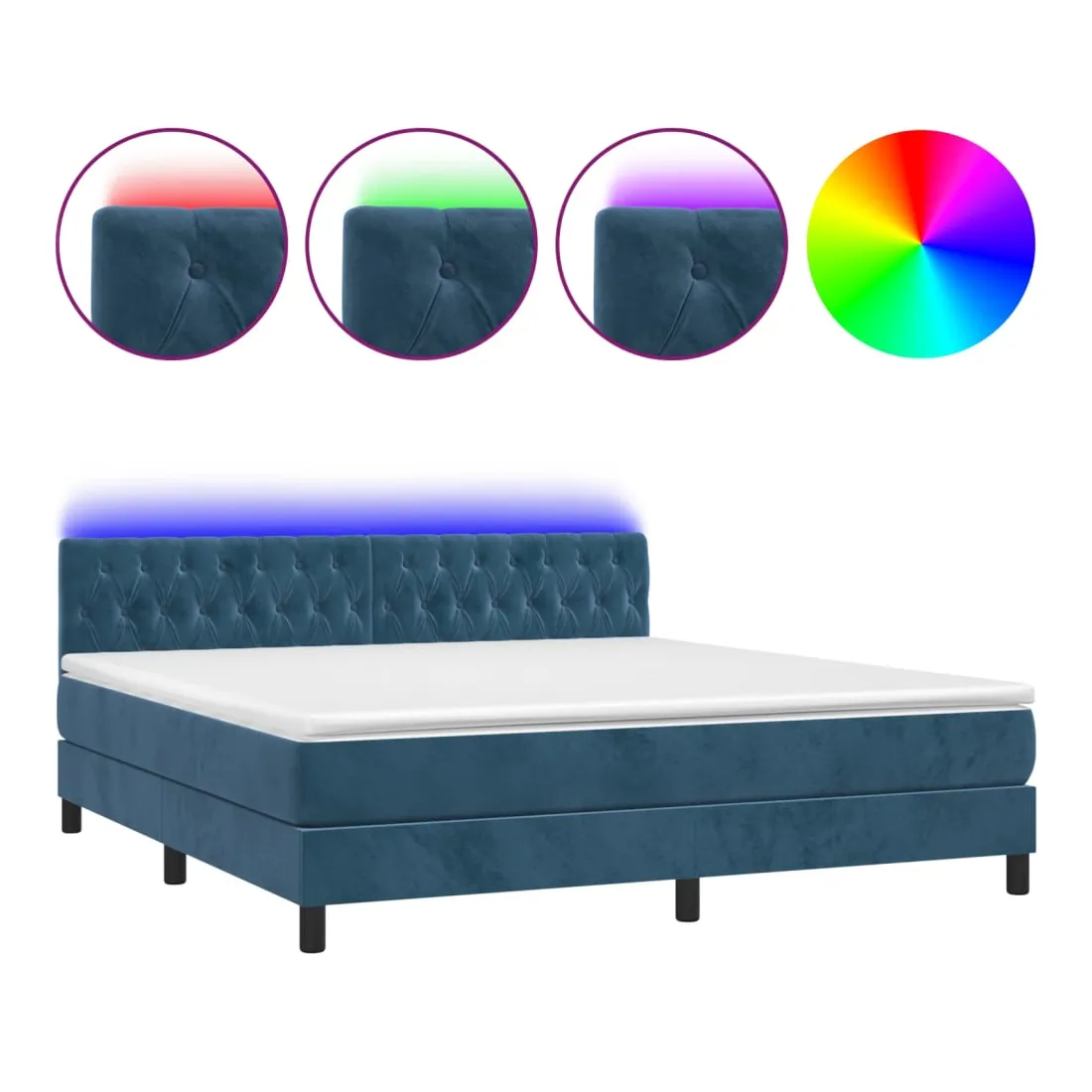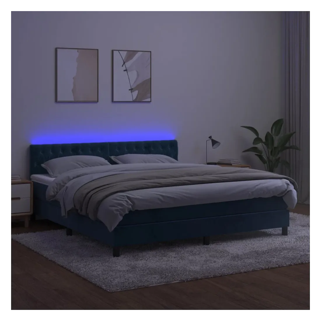 Utilisez ce sommier tapissier avec matelas et LED pour profiter d'un sommeil réparateur ! C'est le point central de votre chambre à coucher. Velours doux : le velours est un tissu doux et luxueux qui se reconnaît à son tas dense de fibres uniformément coupées qui ont une touche lisse. Le tissu en velours présente un toucher doux distinctif, ce qui le rend confortable au toucher.Tête de lit pratique : la tête de lit est réglable en hauteur selon vos préférences. La tête de lit vous offre un excellent soutien du dos lorsque vous êtes assis dans votre lit pour lire ou regarder la télévision.Bande LED colorée : apportez de l'éclairage dans l'obscurité avec des lumières LED colorées !Matelas à ressorts ensachés : le ressort ensaché individuel intégré est connu pour sa très haute qualité tout en assurant un haut niveau de durabilité et d'adaptabilité. Il peut absorber efficacement le bruit et les chocs causés par les sauts et les rotations.Protège-matelas doux pour la peau : le protège-matelas est recouvert d'un tissu résistant et doux pour la peau, ce qui le rend souple et confortable. Remarque :Pour des raisons d'hygiène, le matelas ne peut pas être retourné si l'emballage est retiré ou ouvert.Chaque produit est livré avec un manuel de montage dans la boîte pour un montage facile.Seule la partie avec un symbole de ciseaux peut être coupée et seule la partie avec l'USB continuera à fonctionner comme avant.Ce produit est doté d'un connecteur USB, mais la source d'alimentation certifiée de USB 5V n'est pas incluse.