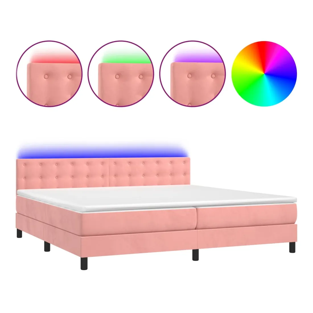 Utilisez ce sommier tapissier avec matelas et LED pour profiter d'un sommeil réparateur ! C'est le point central de votre chambre à coucher. Velours doux : le velours est un tissu doux et luxueux qui se reconnaît à son tas dense de fibres uniformément coupées qui ont une touche lisse. Le tissu en velours présente un toucher doux distinctif, ce qui le rend confortable au toucher.Tête de lit pratique : la tête de lit est réglable en hauteur selon vos préférences. La tête de lit vous offre un excellent soutien du dos lorsque vous êtes assis dans votre lit pour lire ou regarder la télévision.Bande LED colorée : apportez de l'éclairage dans l'obscurité avec des lumières LED colorées !Matelas à ressorts ensachés : le ressort ensaché individuel intégré est connu pour sa très haute qualité tout en assurant un haut niveau de durabilité et d'adaptabilité. Il peut absorber efficacement le bruit et les chocs causés par les sauts et les rotations.Protège-matelas doux pour la peau : le protège-matelas est recouvert d'un tissu résistant et doux pour la peau, ce qui le rend souple et confortable. Remarque :Pour des raisons d'hygiène, le matelas ne peut pas être retourné si l'emballage est retiré ou ouvert.Chaque produit est livré avec un manuel de montage dans la boîte pour un montage facile.Seule la partie avec un symbole de ciseaux peut être coupée et seule la partie avec l'USB continuera à fonctionner comme avant.Ce produit est doté d'un connecteur USB, mais la source d'alimentation certifiée de USB 5V n'est pas incluse.