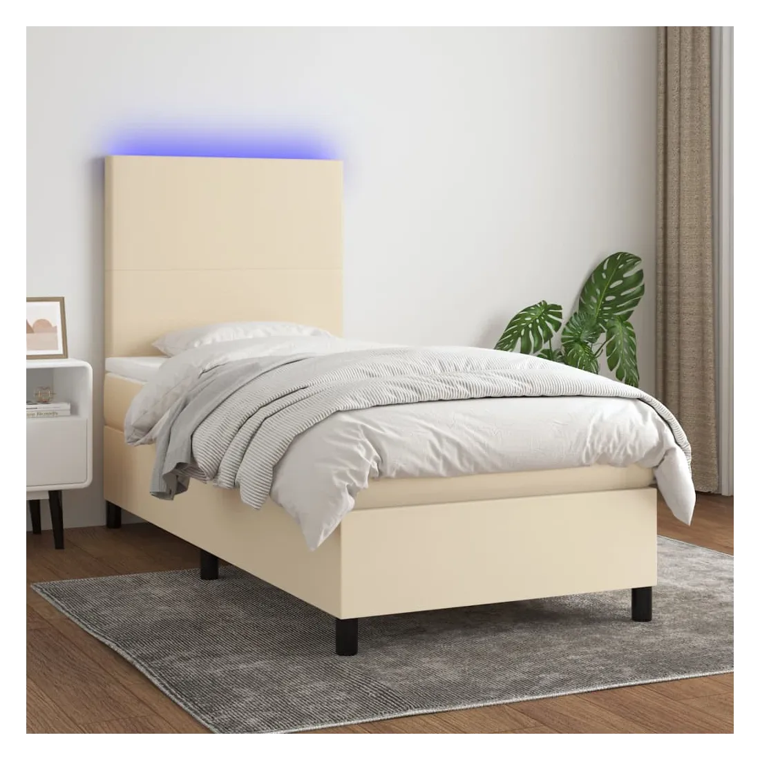 Utilisez ce sommier tapissier avec matelas et LED pour profiter d'un sommeil réparateur ! C'est le point central de votre chambre à coucher. Tissu durable : le tissu présente un aspect simple et épuré, et il est respirant et durable.Tête de lit pratique : la tête de lit est réglable en hauteur selon vos préférences. La tête de lit vous offre un excellent soutien du dos lorsque vous êtes assis dans votre lit pour lire ou regarder la télévision.Bande LED colorée : apportez de l'éclairage dans l'obscurité avec des lumières LED colorées !Matelas à ressorts ensachés : le ressort ensaché individuel intégré est connu pour sa très haute qualité tout en assurant un haut niveau de durabilité et d'adaptabilité. Il peut absorber efficacement le bruit et les chocs causés par les sauts et les rotations.Protège-matelas doux pour la peau : le protège-matelas est recouvert d'un tissu résistant et doux pour la peau, ce qui le rend souple et confortable. Remarque :Pour des raisons d'hygiène, le matelas ne peut pas être retourné si l'emballage est retiré ou ouvert.Seule la partie avec un symbole de ciseaux peut être coupée et seule la partie avec l'USB continuera à fonctionner comme avant.Chaque produit est livré avec un manuel de montage dans la boîte pour un montage facile.Ce produit est doté d'un connecteur USB, mais la source d'alimentation certifiée de USB 5V n'est pas incluse.