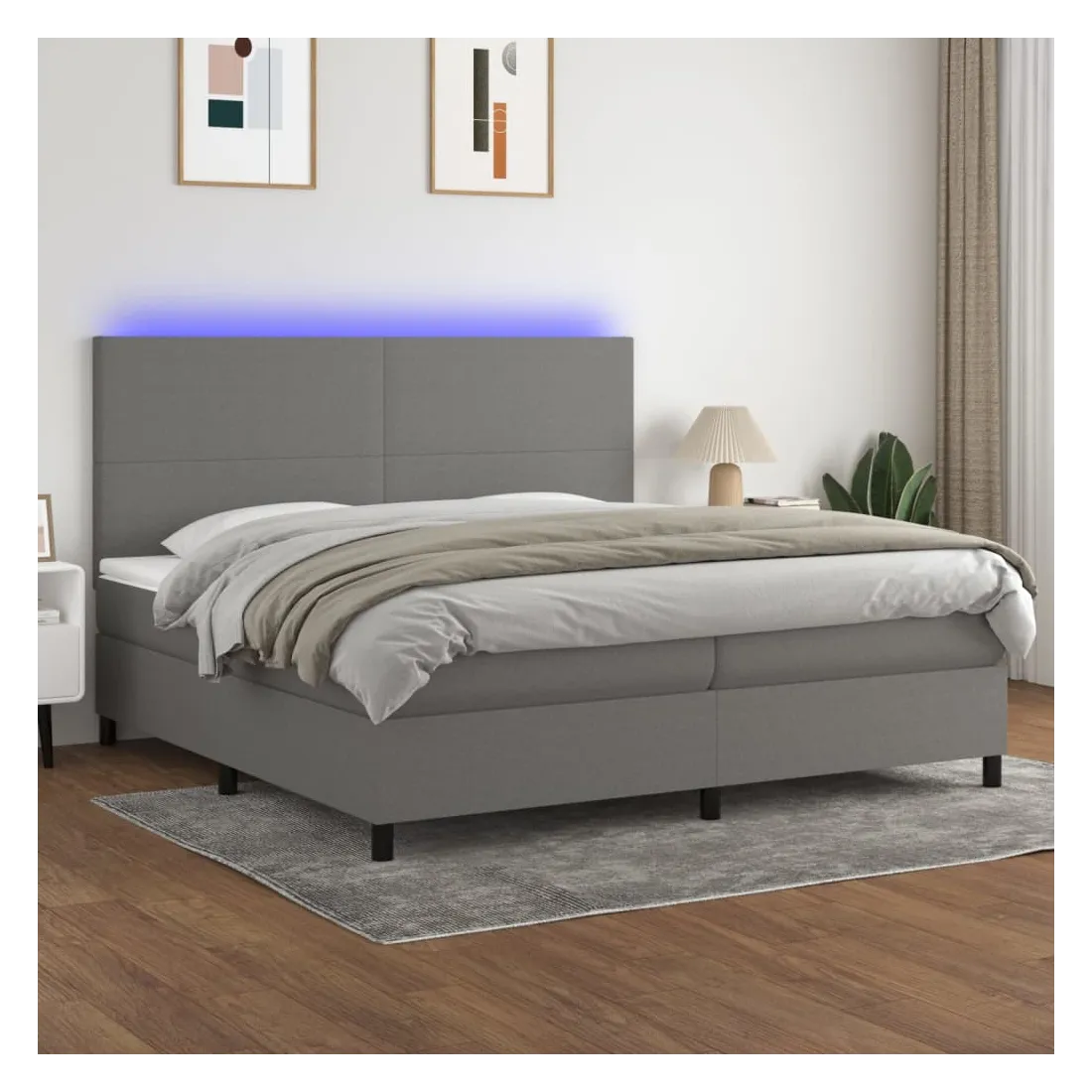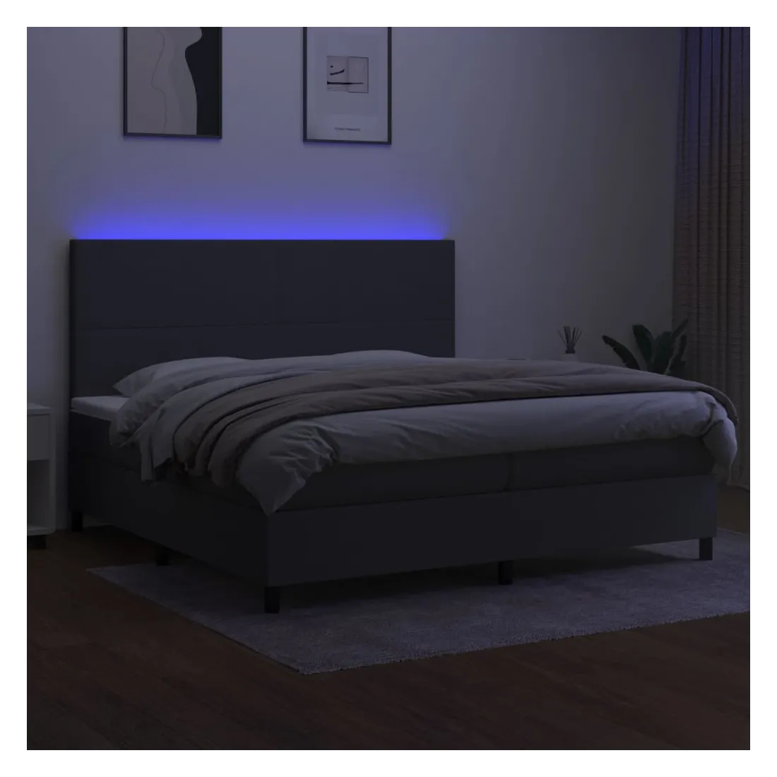 Utilisez ce sommier tapissier avec matelas et LED pour profiter d'un sommeil réparateur ! C'est le point central de votre chambre à coucher. Tissu durable : le tissu présente un aspect simple et épuré, et il est respirant et durable.Tête de lit pratique : la tête de lit est réglable en hauteur selon vos préférences. La tête de lit vous offre un excellent soutien du dos lorsque vous êtes assis dans votre lit pour lire ou regarder la télévision.Bande LED colorée : apportez de l'éclairage dans l'obscurité avec des lumières LED colorées !Matelas à ressorts ensachés : le ressort ensaché individuel intégré est connu pour sa très haute qualité tout en assurant un haut niveau de durabilité et d'adaptabilité. Il peut absorber efficacement le bruit et les chocs causés par les sauts et les rotations.Protège-matelas doux pour la peau : le protège-matelas est recouvert d'un tissu résistant et doux pour la peau, ce qui le rend souple et confortable. Remarque :Pour des raisons d'hygiène, le matelas ne peut pas être retourné si l'emballage est retiré ou ouvert.Seule la partie avec un symbole de ciseaux peut être coupée et seule la partie avec l'USB continuera à fonctionner comme avant.Chaque produit est livré avec un manuel de montage dans la boîte pour un montage facile.Ce produit est doté d'un connecteur USB, mais la source d'alimentation certifiée de USB 5V n'est pas incluse.