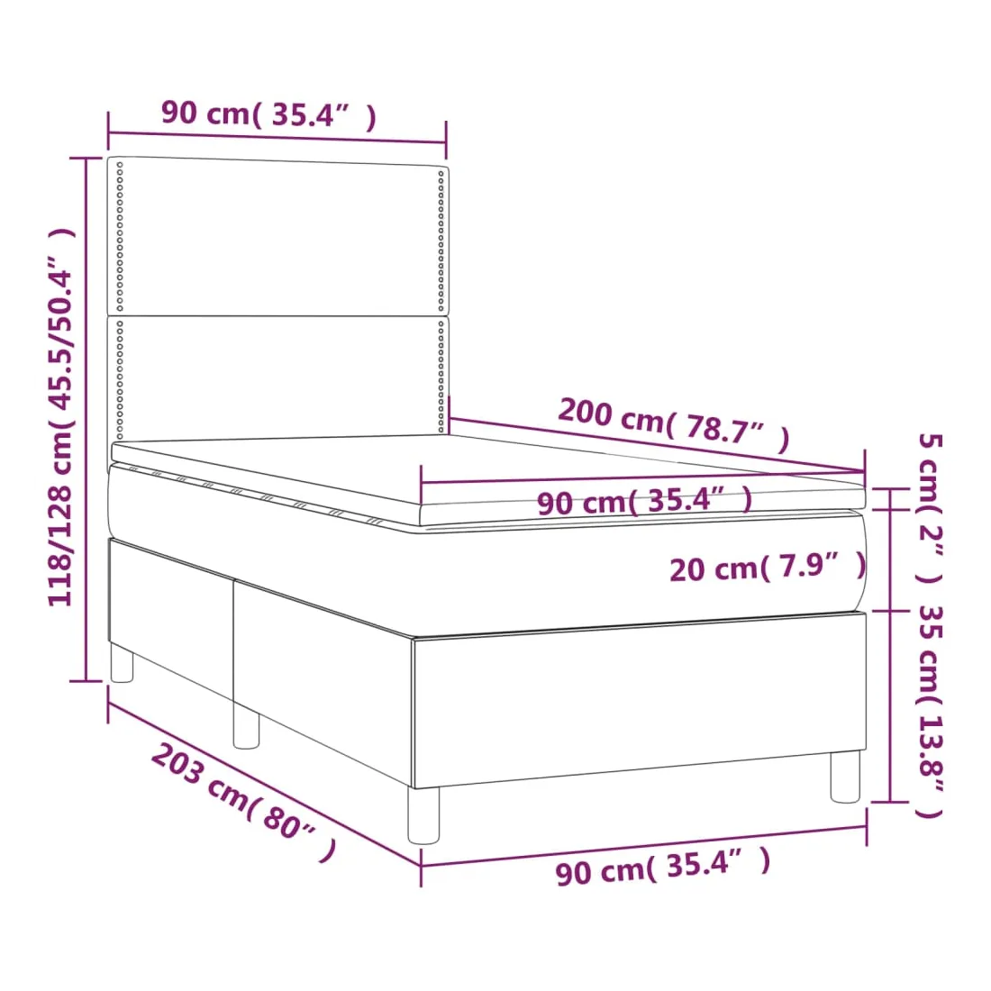 Sommier à lattes de lit avec matelas et LED Gris clair 90x200cm