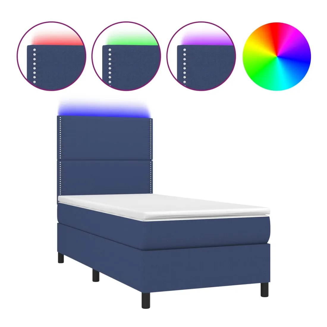 Utilisez ce sommier tapissier avec matelas et LED pour profiter d'un sommeil réparateur ! C'est le point central de votre chambre à coucher. Tissu durable : le tissu présente un aspect simple et épuré, et il est respirant et durable.Tête de lit pratique : la tête de lit est réglable en hauteur selon vos préférences. La tête de lit vous offre un excellent soutien du dos lorsque vous êtes assis dans votre lit pour lire ou regarder la télévision.Bande LED colorée : apportez de l'éclairage dans l'obscurité avec des lumières LED colorées !Matelas à ressorts ensachés : le ressort ensaché individuel intégré est connu pour sa très haute qualité tout en assurant un haut niveau de durabilité et d'adaptabilité. Il peut absorber efficacement le bruit et les chocs causés par les sauts et les rotations.Protège-matelas doux pour la peau : le protège-matelas est recouvert d'un tissu résistant et doux pour la peau, ce qui le rend souple et confortable. Remarque :Pour des raisons d'hygiène, le matelas ne peut pas être retourné si l'emballage est retiré ou ouvert.Seule la partie avec un symbole de ciseaux peut être coupée et seule la partie avec l'USB continuera à fonctionner comme avant.Chaque produit est livré avec un manuel de montage dans la boîte pour un montage facile.Ce produit est doté d'un connecteur USB, mais la source d'alimentation certifiée de USB 5V n'est pas incluse.