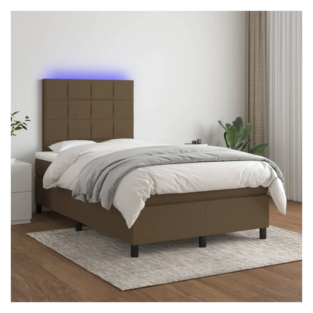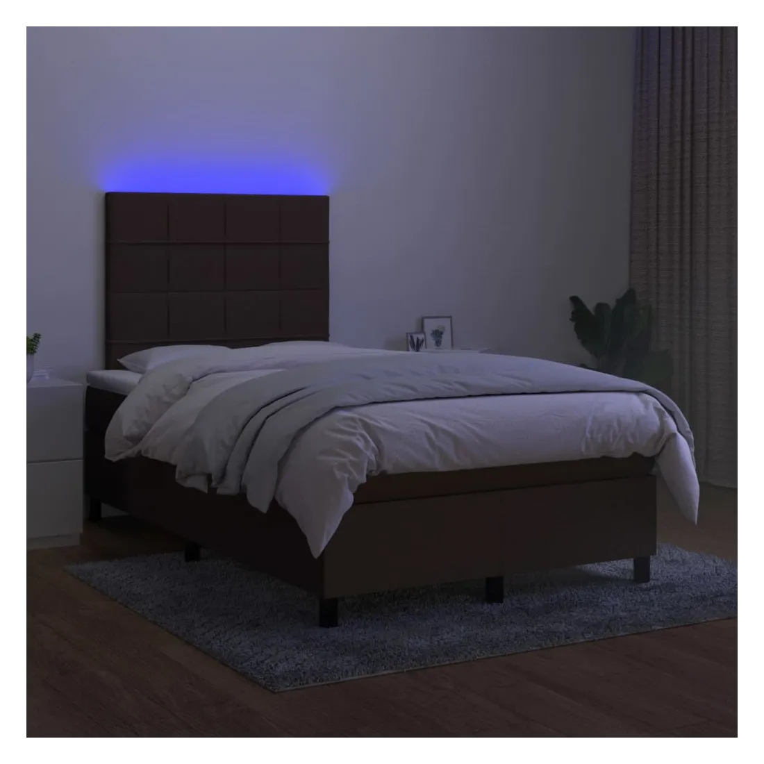 Sommier à lattes de lit matelas et LED Marron foncé 120x200 cm