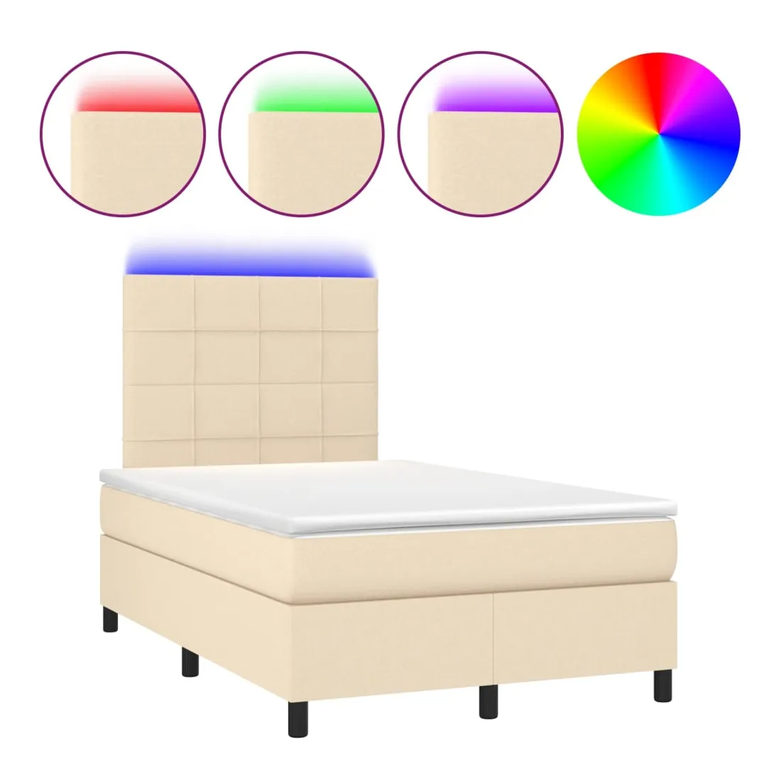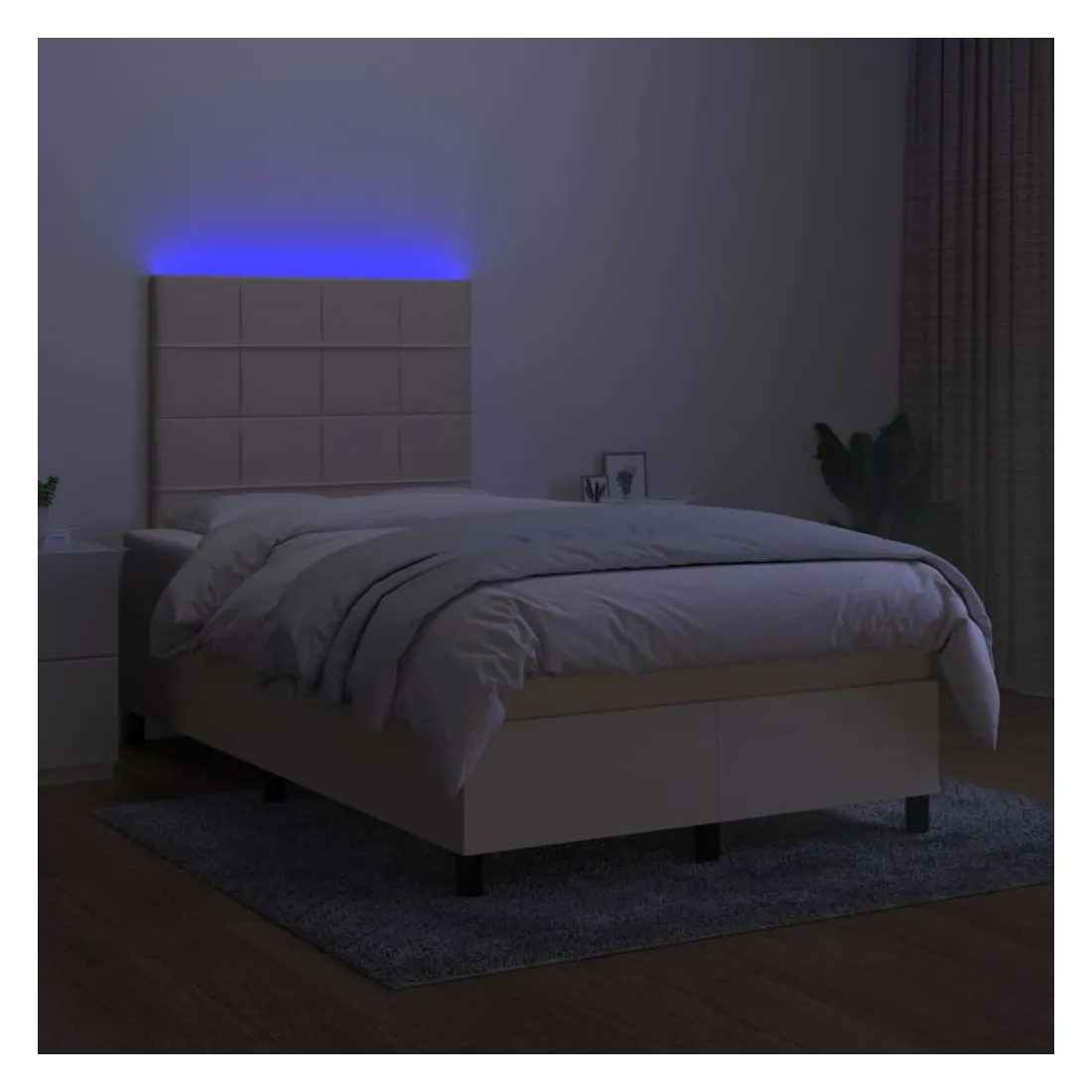 Utilisez ce sommier tapissier avec matelas et LED pour profiter d'un sommeil réparateur ! C'est le point central de votre chambre à coucher. Tissu durable : le tissu présente un aspect simple et épuré, et il est respirant et durable.Tête de lit pratique : la tête de lit est réglable en hauteur selon vos préférences. La tête de lit vous offre un excellent soutien du dos lorsque vous êtes assis dans votre lit pour lire ou regarder la télévision.Bande LED colorée : apportez de l'éclairage dans l'obscurité avec des lumières LED colorées !Matelas à ressorts ensachés : le ressort ensaché individuel intégré est connu pour sa très haute qualité tout en assurant un haut niveau de durabilité et d'adaptabilité. Il peut absorber efficacement le bruit et les chocs causés par les sauts et les rotations.Protège-matelas doux pour la peau : le protège-matelas est recouvert d'un tissu résistant et doux pour la peau, ce qui le rend souple et confortable. Remarque :Pour des raisons d'hygiène, le matelas ne peut pas être retourné si l'emballage est retiré ou ouvert.Seule la partie avec un symbole de ciseaux peut être coupée et seule la partie avec l'USB continuera à fonctionner comme avant.Chaque produit est livré avec un manuel de montage dans la boîte pour un montage facile.Ce produit est doté d'un connecteur USB, mais la source d'alimentation certifiée de USB 5V n'est pas incluse.