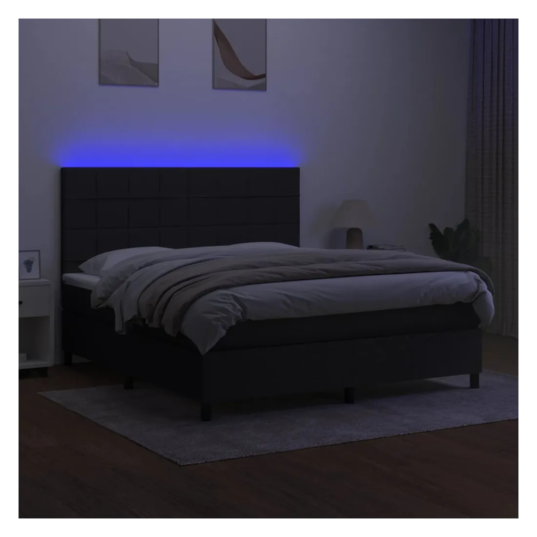 Utilisez ce sommier tapissier avec matelas et LED pour profiter d'un sommeil réparateur ! C'est le point central de votre chambre à coucher. Tissu durable : le tissu présente un aspect simple et épuré, et il est respirant et durable.Tête de lit pratique : la tête de lit est réglable en hauteur selon vos préférences. La tête de lit vous offre un excellent soutien du dos lorsque vous êtes assis dans votre lit pour lire ou regarder la télévision.Bande LED colorée : apportez de l'éclairage dans l'obscurité avec des lumières LED colorées !Matelas à ressorts ensachés : le ressort ensaché individuel intégré est connu pour sa très haute qualité tout en assurant un haut niveau de durabilité et d'adaptabilité. Il peut absorber efficacement le bruit et les chocs causés par les sauts et les rotations.Protège-matelas doux pour la peau : le protège-matelas est recouvert d'un tissu résistant et doux pour la peau, ce qui le rend souple et confortable. Remarque :Pour des raisons d'hygiène, le matelas ne peut pas être retourné si l'emballage est retiré ou ouvert.Seule la partie avec un symbole de ciseaux peut être coupée et seule la partie avec l'USB continuera à fonctionner comme avant.Chaque produit est livré avec un manuel de montage dans la boîte pour un montage facile.Ce produit est doté d'un connecteur USB, mais la source d'alimentation certifiée de USB 5V n'est pas incluse.