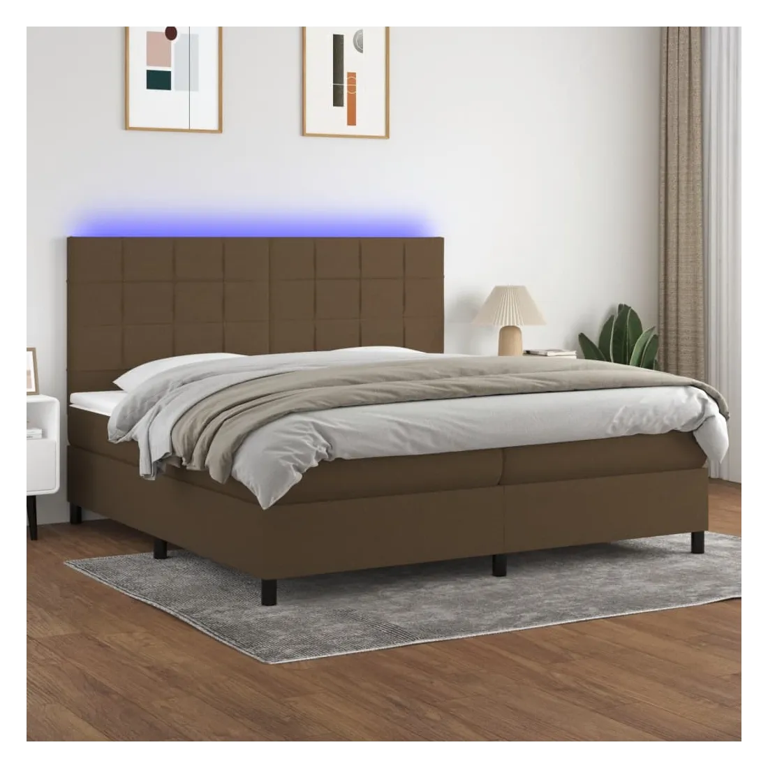 Sommier à lattes de lit matelas et LED Marron foncé 200x200 cm