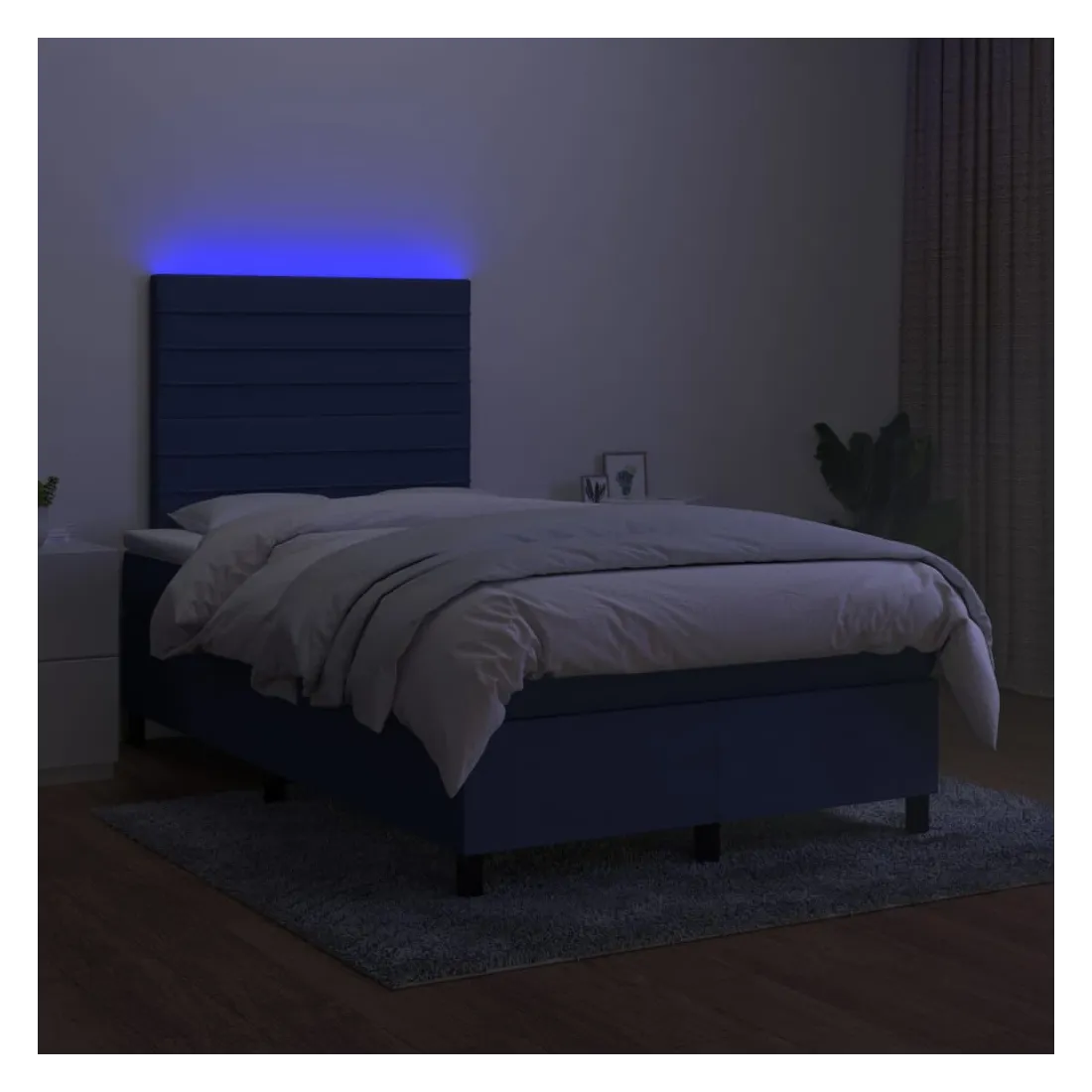 Sommier à lattes de lit et matelas et LED Bleu 120x200 cm Tissu