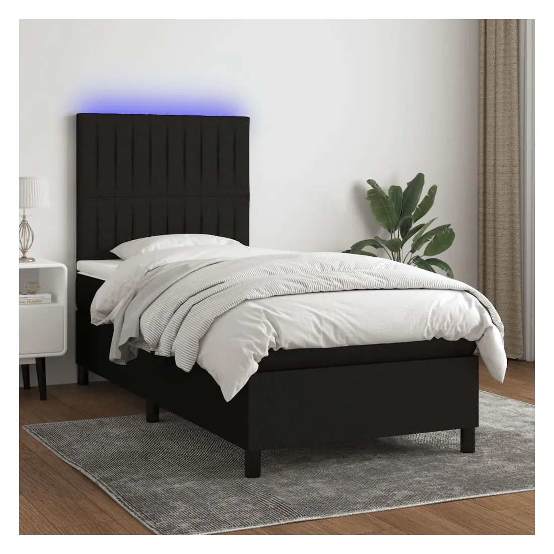 Sommier à lattes de lit avec matelas et LED Noir 80x200cm Tissu