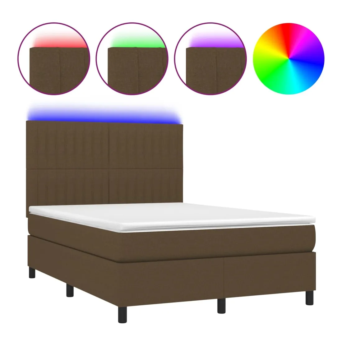 Sommier à lattes de lit matelas et LED Marron foncé 140x200 cm