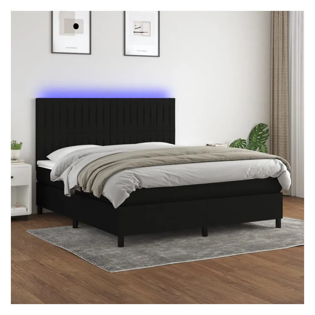 Utilisez ce sommier tapissier avec matelas et LED pour profiter d'un sommeil réparateur ! C'est le point central de votre chambre à coucher. Tissu durable : le tissu présente un aspect simple et épuré, et il est respirant et durable.Tête de lit pratique : la tête de lit est réglable en hauteur selon vos préférences. La tête de lit vous offre un excellent soutien du dos lorsque vous êtes assis dans votre lit pour lire ou regarder la télévision.Bande LED colorée : apportez de l'éclairage dans l'obscurité avec des lumières LED colorées !Matelas à ressorts ensachés : le ressort ensaché individuel intégré est connu pour sa très haute qualité tout en assurant un haut niveau de durabilité et d'adaptabilité. Il peut absorber efficacement le bruit et les chocs causés par les sauts et les rotations.Protège-matelas doux pour la peau : le protège-matelas est recouvert d'un tissu résistant et doux pour la peau, ce qui le rend souple et confortable. Remarque :Pour des raisons d'hygiène, le matelas ne peut pas être retourné si l'emballage est retiré ou ouvert.Seule la partie avec un symbole de ciseaux peut être coupée et seule la partie avec l'USB continuera à fonctionner comme avant.Chaque produit est livré avec un manuel de montage dans la boîte pour un montage facile.Ce produit est doté d'un connecteur USB, mais la source d'alimentation certifiée de USB 5V n'est pas incluse.