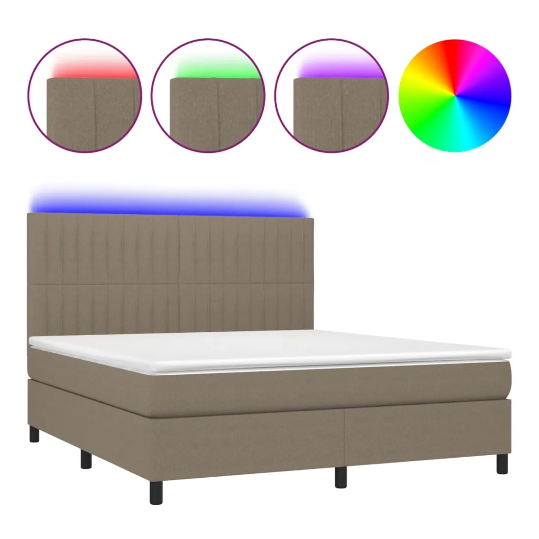 Utilisez ce sommier tapissier avec matelas et LED pour profiter d'un sommeil réparateur ! C'est le point central de votre chambre à coucher. Tissu durable : le tissu présente un aspect simple et épuré, et il est respirant et durable.Tête de lit pratique : la tête de lit est réglable en hauteur selon vos préférences. La tête de lit vous offre un excellent soutien du dos lorsque vous êtes assis dans votre lit pour lire ou regarder la télévision.Bande LED colorée : apportez de l'éclairage dans l'obscurité avec des lumières LED colorées !Matelas à ressorts ensachés : le ressort ensaché individuel intégré est connu pour sa très haute qualité tout en assurant un haut niveau de durabilité et d'adaptabilité. Il peut absorber efficacement le bruit et les chocs causés par les sauts et les rotations.Protège-matelas doux pour la peau : le protège-matelas est recouvert d'un tissu résistant et doux pour la peau, ce qui le rend souple et confortable. Remarque :Pour des raisons d'hygiène, le matelas ne peut pas être retourné si l'emballage est retiré ou ouvert.Seule la partie avec un symbole de ciseaux peut être coupée et seule la partie avec l'USB continuera à fonctionner comme avant.Chaque produit est livré avec un manuel de montage dans la boîte pour un montage facile.Ce produit est doté d'un connecteur USB, mais la source d'alimentation certifiée de USB 5V n'est pas incluse.