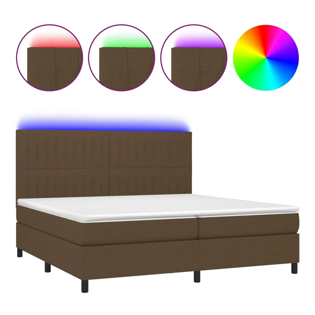 Utilisez ce sommier tapissier avec matelas et LED pour profiter d'un sommeil réparateur ! C'est le point central de votre chambre à coucher. Tissu durable : le tissu présente un aspect simple et épuré, et il est respirant et durable.Tête de lit pratique : la tête de lit est réglable en hauteur selon vos préférences. La tête de lit vous offre un excellent soutien du dos lorsque vous êtes assis dans votre lit pour lire ou regarder la télévision.Bande LED colorée : apportez de l'éclairage dans l'obscurité avec des lumières LED colorées !Matelas à ressorts ensachés : le ressort ensaché individuel intégré est connu pour sa très haute qualité tout en assurant un haut niveau de durabilité et d'adaptabilité. Il peut absorber efficacement le bruit et les chocs causés par les sauts et les rotations.Protège-matelas doux pour la peau : le protège-matelas est recouvert d'un tissu résistant et doux pour la peau, ce qui le rend souple et confortable. Remarque :Pour des raisons d'hygiène, le matelas ne peut pas être retourné si l'emballage est retiré ou ouvert.Seule la partie avec un symbole de ciseaux peut être coupée et seule la partie avec l'USB continuera à fonctionner comme avant.Chaque produit est livré avec un manuel de montage dans la boîte pour un montage facile.Ce produit est doté d'un connecteur USB, mais la source d'alimentation certifiée de USB 5V n'est pas incluse.
