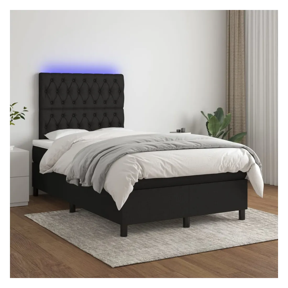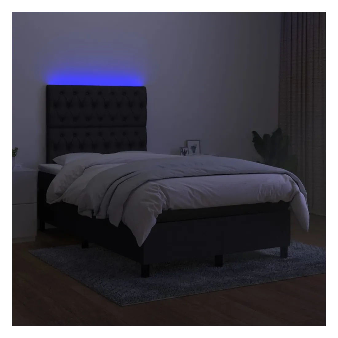 Utilisez ce sommier tapissier avec matelas et LED pour profiter d'un sommeil réparateur ! C'est le point central de votre chambre à coucher. Tissu durable : le tissu présente un aspect simple et épuré, et il est respirant et durable.Tête de lit pratique : la tête de lit est réglable en hauteur selon vos préférences. La tête de lit vous offre un excellent soutien du dos lorsque vous êtes assis dans votre lit pour lire ou regarder la télévision.Bande LED colorée : apportez de l'éclairage dans l'obscurité avec des lumières LED colorées !Matelas à ressorts ensachés : le ressort ensaché individuel intégré est connu pour sa très haute qualité tout en assurant un haut niveau de durabilité et d'adaptabilité. Il peut absorber efficacement le bruit et les chocs causés par les sauts et les rotations.Protège-matelas doux pour la peau : le protège-matelas est recouvert d'un tissu résistant et doux pour la peau, ce qui le rend souple et confortable. Remarque :Pour des raisons d'hygiène, le matelas ne peut pas être retourné si l'emballage est retiré ou ouvert.Seule la partie avec un symbole de ciseaux peut être coupée et seule la partie avec l'USB continuera à fonctionner comme avant.Chaque produit est livré avec un manuel de montage dans la boîte pour un montage facile.Ce produit est doté d'un connecteur USB, mais la source d'alimentation certifiée de USB 5V n'est pas incluse.