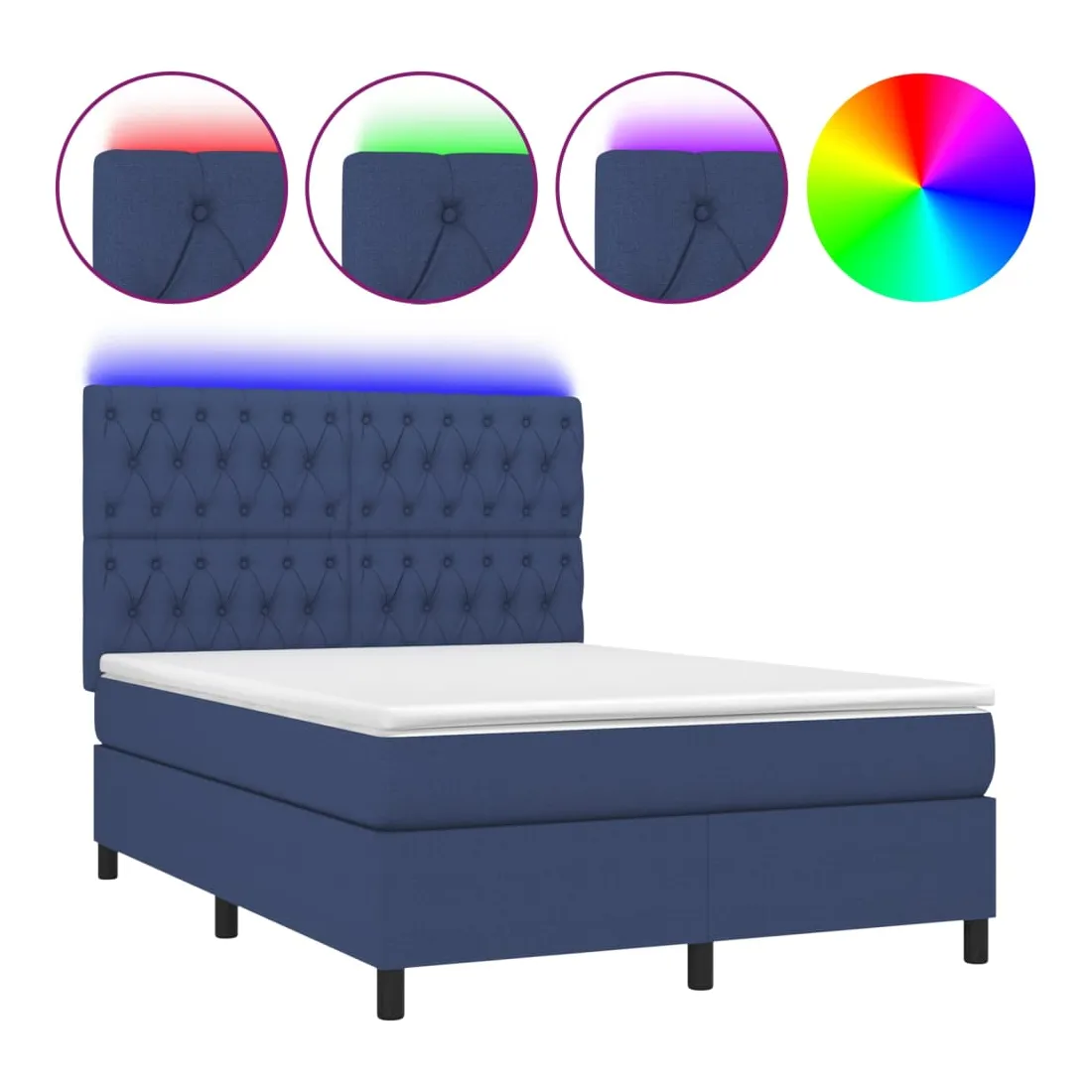 Sommier à lattes de lit et matelas et LED Bleu 140x190 cm Tissu