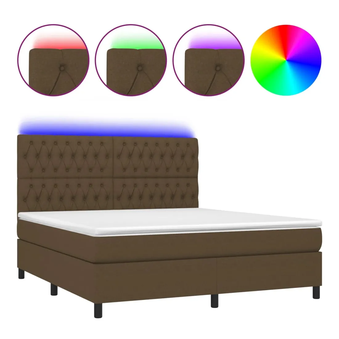 Sommier à lattes de lit matelas et LED Marron foncé 160x200 cm
