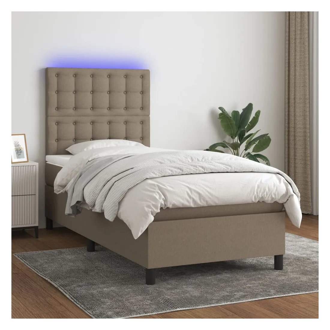 Sommier à lattes de lit et matelas et LED Taupe 100x200cm Tissu