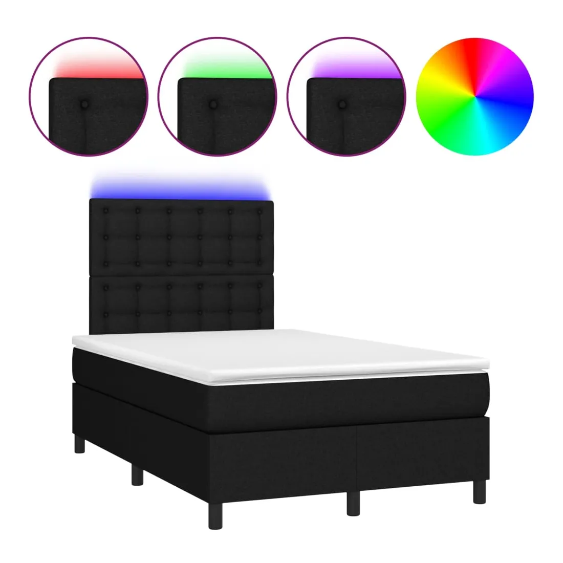 Sommier à lattes de lit et matelas et LED Noir 120x200 cm Tissu