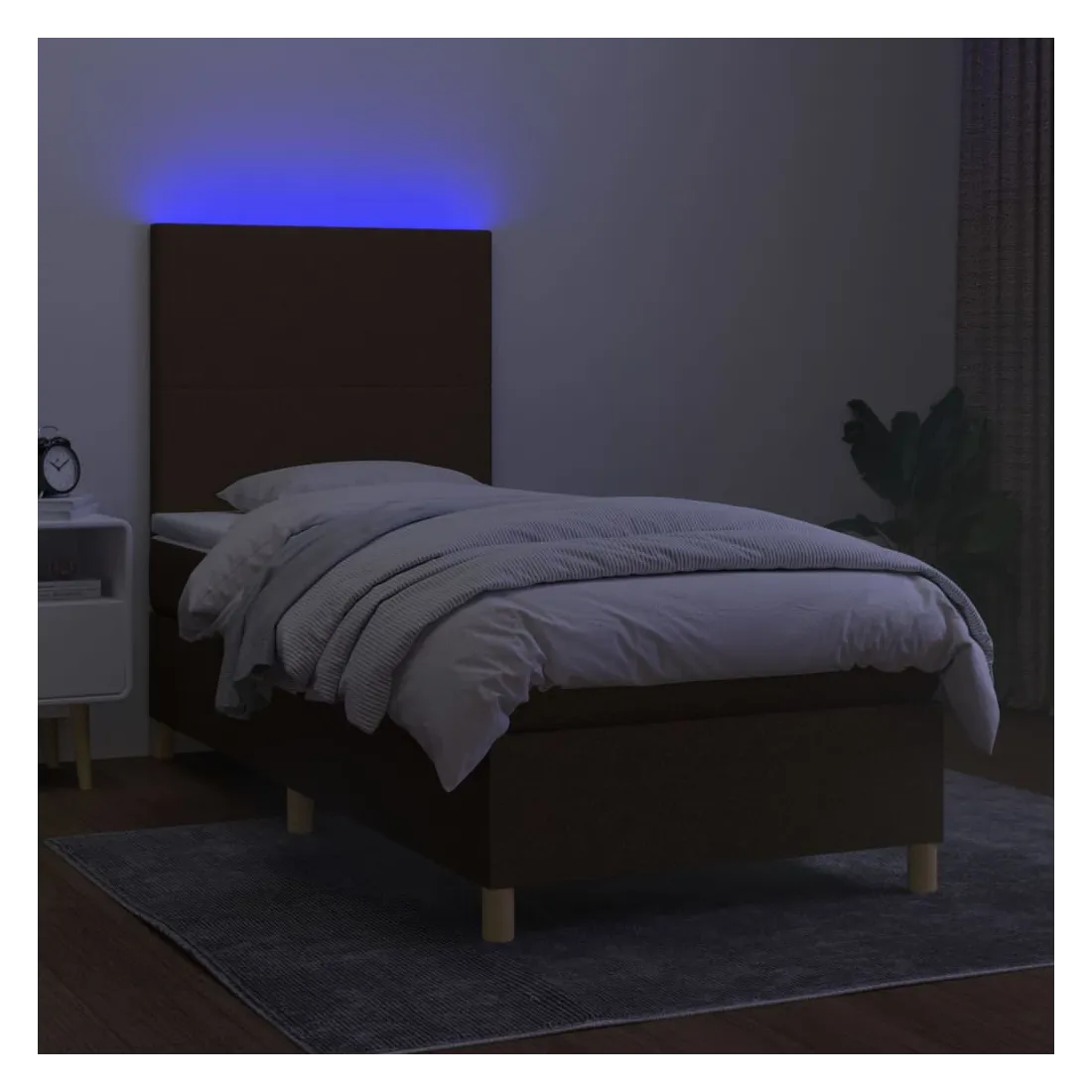 Sommier à lattes de lit matelas et LED Marron foncé 100x200cm