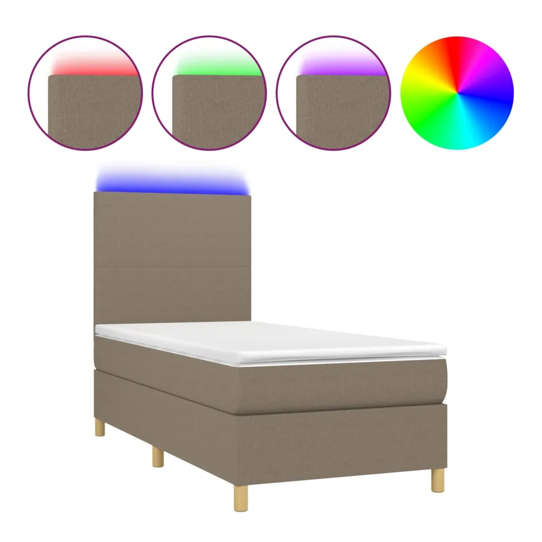 Sommier à lattes de lit et matelas et LED Taupe 100x200cm Tissu