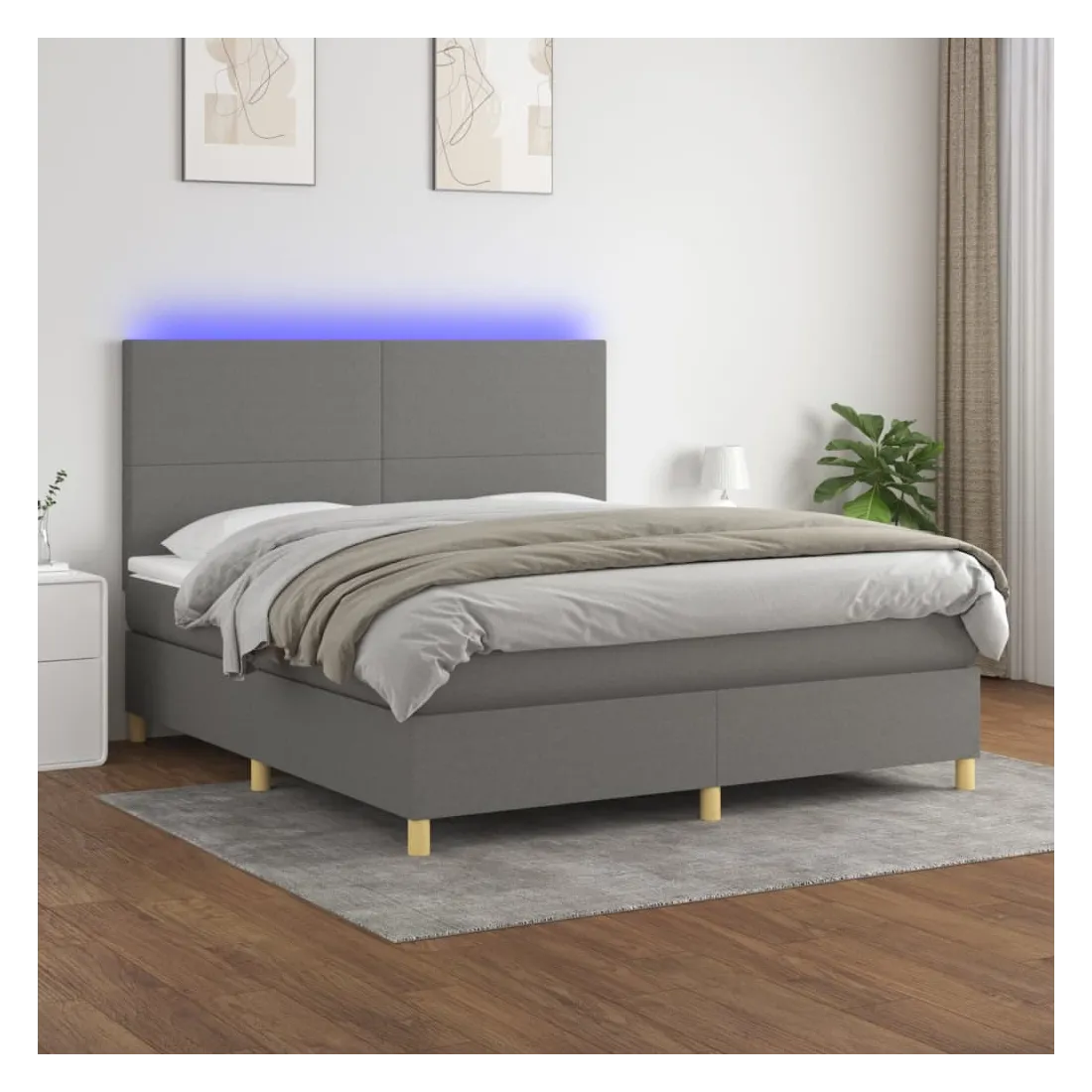 Utilisez ce sommier tapissier avec matelas et LED pour profiter d'un sommeil réparateur ! C'est le point central de votre chambre à coucher. Tissu durable : le tissu présente un aspect simple et épuré, et il est respirant et durable.Tête de lit pratique : la tête de lit est réglable en hauteur selon vos préférences. La tête de lit vous offre un excellent soutien du dos lorsque vous êtes assis dans votre lit pour lire ou regarder la télévision.Bande LED colorée : apportez de l'éclairage dans l'obscurité avec des lumières LED colorées !Matelas à ressorts ensachés : le ressort ensaché individuel intégré est connu pour sa très haute qualité tout en assurant un haut niveau de durabilité et d'adaptabilité. Il peut absorber efficacement le bruit et les chocs causés par les sauts et les rotations.Protège-matelas doux pour la peau : le protège-matelas est recouvert d'un tissu résistant et doux pour la peau, ce qui le rend souple et confortable. Remarque :Pour des raisons d'hygiène, le matelas ne peut pas être retourné si l'emballage est retiré ou ouvert.Seule la partie avec un symbole de ciseaux peut être coupée et seule la partie avec l'USB continuera à fonctionner comme avant.Chaque produit est livré avec un manuel de montage dans la boîte pour un montage facile.Ce produit est doté d'un connecteur USB, mais la source d'alimentation certifiée de USB 5V n'est pas incluse.