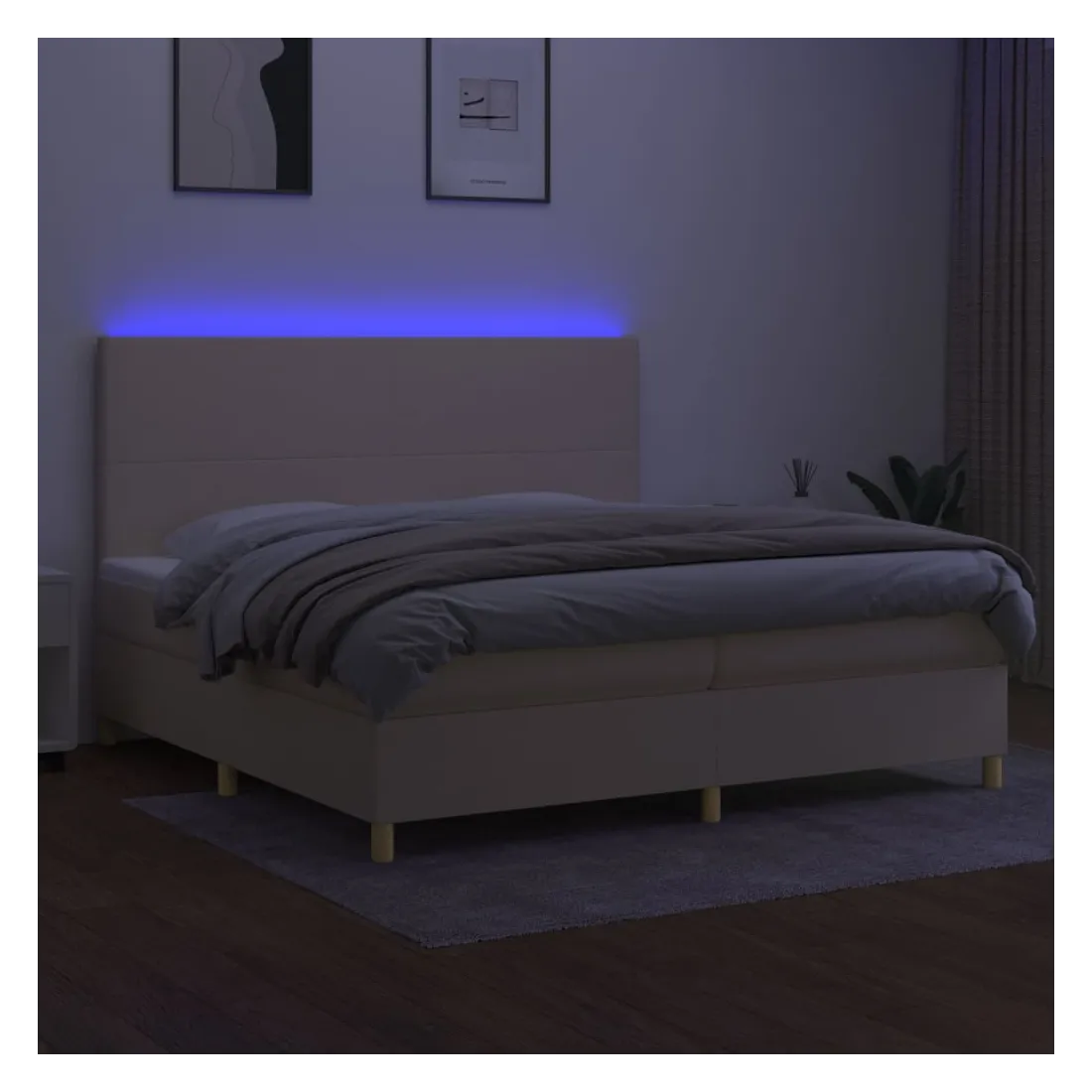Utilisez ce sommier tapissier avec matelas et LED pour profiter d'un sommeil réparateur ! C'est le point central de votre chambre à coucher. Tissu durable : le tissu présente un aspect simple et épuré, et il est respirant et durable.Tête de lit pratique : la tête de lit est réglable en hauteur selon vos préférences. La tête de lit vous offre un excellent soutien du dos lorsque vous êtes assis dans votre lit pour lire ou regarder la télévision.Bande LED colorée : apportez de l'éclairage dans l'obscurité avec des lumières LED colorées !Matelas à ressorts ensachés : le ressort ensaché individuel intégré est connu pour sa très haute qualité tout en assurant un haut niveau de durabilité et d'adaptabilité. Il peut absorber efficacement le bruit et les chocs causés par les sauts et les rotations.Protège-matelas doux pour la peau : le protège-matelas est recouvert d'un tissu résistant et doux pour la peau, ce qui le rend souple et confortable. Remarque :Pour des raisons d'hygiène, le matelas ne peut pas être retourné si l'emballage est retiré ou ouvert.Seule la partie avec un symbole de ciseaux peut être coupée et seule la partie avec l'USB continuera à fonctionner comme avant.Chaque produit est livré avec un manuel de montage dans la boîte pour un montage facile.Ce produit est doté d'un connecteur USB, mais la source d'alimentation certifiée de USB 5V n'est pas incluse.