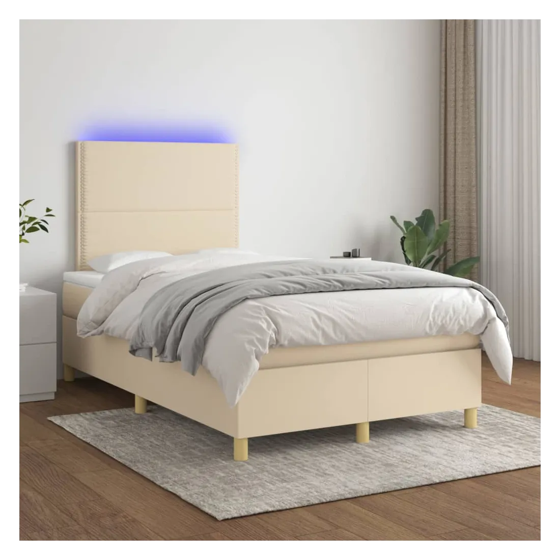 Sommier à lattes de lit et matelas et LED Crème 120x200cm Tissu