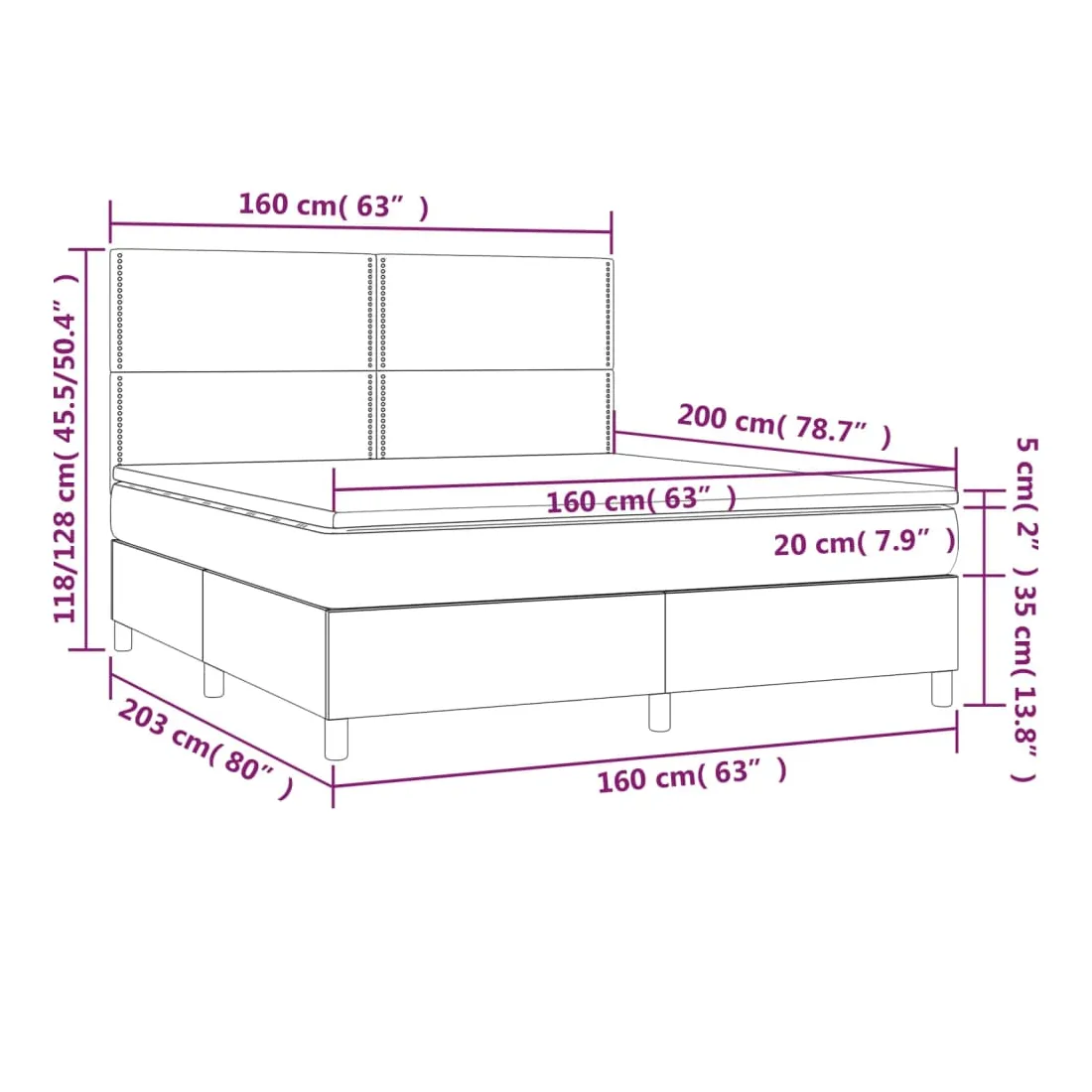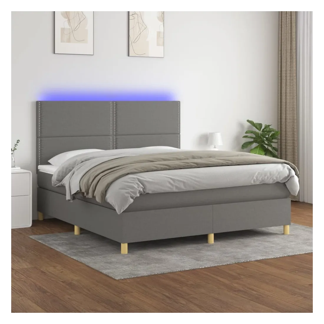 Sommier à lattes de lit et matelas et LED Gris foncé 160x200 cm