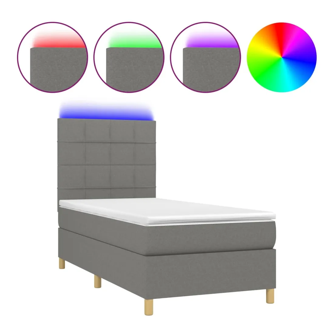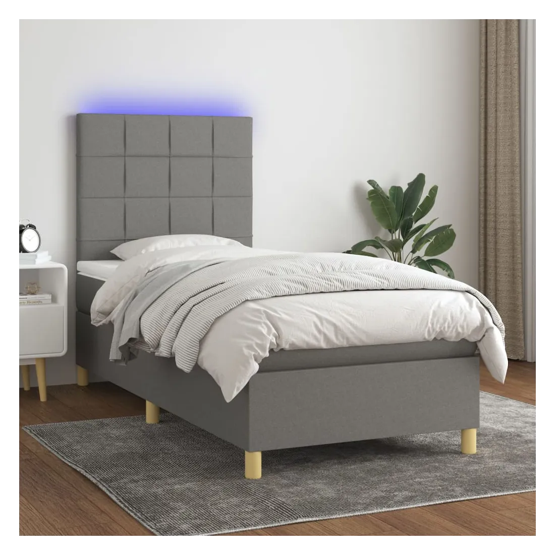 Utilisez ce sommier tapissier avec matelas et LED pour profiter d'un sommeil réparateur ! C'est le point central de votre chambre à coucher. Tissu durable : le tissu présente un aspect simple et épuré, et il est respirant et durable.Tête de lit pratique : la tête de lit est réglable en hauteur selon vos préférences. La tête de lit vous offre un excellent soutien du dos lorsque vous êtes assis dans votre lit pour lire ou regarder la télévision.Bande LED colorée : apportez de l'éclairage dans l'obscurité avec des lumières LED colorées !Matelas à ressorts ensachés : le ressort ensaché individuel intégré est connu pour sa très haute qualité tout en assurant un haut niveau de durabilité et d'adaptabilité. Il peut absorber efficacement le bruit et les chocs causés par les sauts et les rotations.Protège-matelas doux pour la peau : le protège-matelas est recouvert d'un tissu résistant et doux pour la peau, ce qui le rend souple et confortable. Remarque :Pour des raisons d'hygiène, le matelas ne peut pas être retourné si l'emballage est retiré ou ouvert.Seule la partie avec un symbole de ciseaux peut être coupée et seule la partie avec l'USB continuera à fonctionner comme avant.Chaque produit est livré avec un manuel de montage dans la boîte pour un montage facile.Ce produit est doté d'un connecteur USB, mais la source d'alimentation certifiée de USB 5V n'est pas incluse.