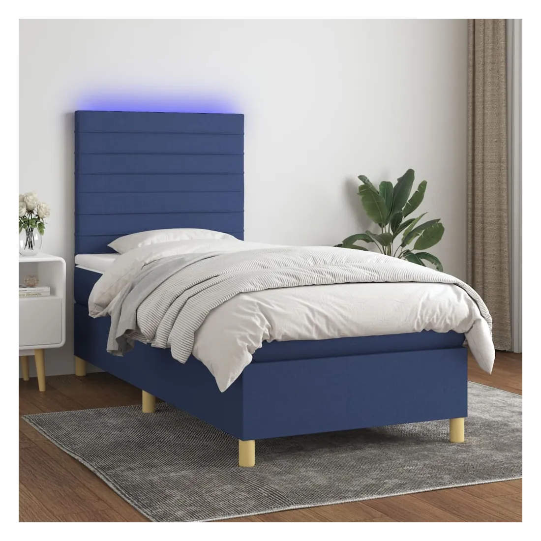 Sommier à lattes de lit et matelas et LED Bleu 80x200 cm Tissu