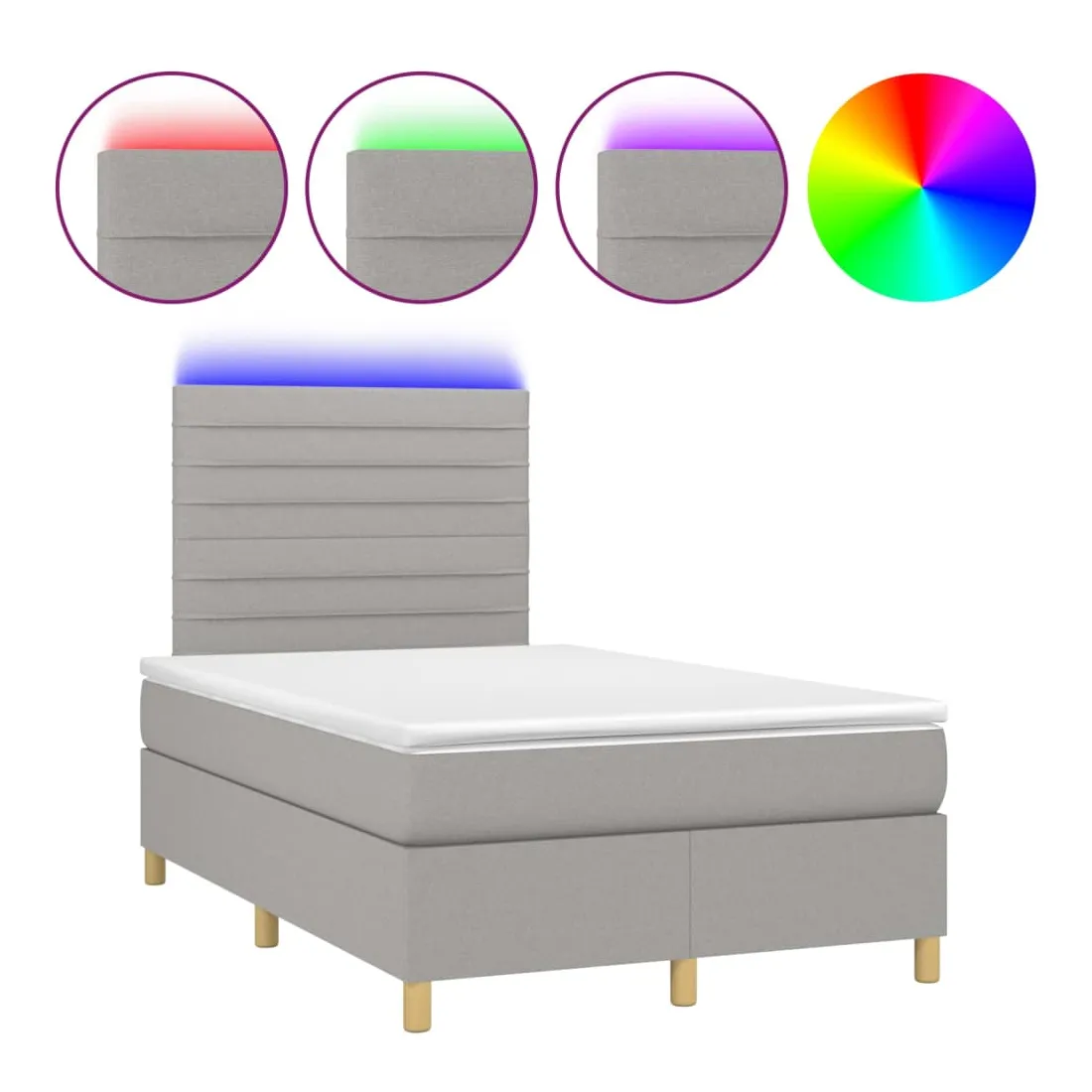 Utilisez ce sommier tapissier avec matelas et LED pour profiter d'un sommeil réparateur ! C'est le point central de votre chambre à coucher. Tissu durable : le tissu présente un aspect simple et épuré, et il est respirant et durable.Tête de lit pratique : la tête de lit est réglable en hauteur selon vos préférences. La tête de lit vous offre un excellent soutien du dos lorsque vous êtes assis dans votre lit pour lire ou regarder la télévision.Bande LED colorée : apportez de l'éclairage dans l'obscurité avec des lumières LED colorées !Matelas à ressorts ensachés : le ressort ensaché individuel intégré est connu pour sa très haute qualité tout en assurant un haut niveau de durabilité et d'adaptabilité. Il peut absorber efficacement le bruit et les chocs causés par les sauts et les rotations.Protège-matelas doux pour la peau : le protège-matelas est recouvert d'un tissu résistant et doux pour la peau, ce qui le rend souple et confortable. Remarque :Pour des raisons d'hygiène, le matelas ne peut pas être retourné si l'emballage est retiré ou ouvert.Seule la partie avec un symbole de ciseaux peut être coupée et seule la partie avec l'USB continuera à fonctionner comme avant.Chaque produit est livré avec un manuel de montage dans la boîte pour un montage facile.Ce produit est doté d'un connecteur USB, mais la source d'alimentation certifiée de USB 5V n'est pas incluse.