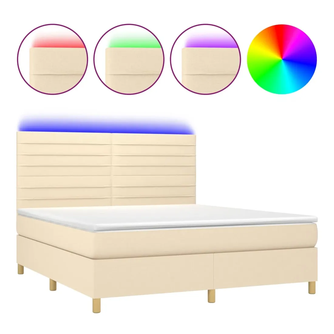 Utilisez ce sommier tapissier avec matelas et LED pour profiter d'un sommeil réparateur ! C'est le point central de votre chambre à coucher. Tissu durable : le tissu présente un aspect simple et épuré, et il est respirant et durable.Tête de lit pratique : la tête de lit est réglable en hauteur selon vos préférences. La tête de lit vous offre un excellent soutien du dos lorsque vous êtes assis dans votre lit pour lire ou regarder la télévision.Bande LED colorée : apportez de l'éclairage dans l'obscurité avec des lumières LED colorées !Matelas à ressorts ensachés : le ressort ensaché individuel intégré est connu pour sa très haute qualité tout en assurant un haut niveau de durabilité et d'adaptabilité. Il peut absorber efficacement le bruit et les chocs causés par les sauts et les rotations.Protège-matelas doux pour la peau : le protège-matelas est recouvert d'un tissu résistant et doux pour la peau, ce qui le rend souple et confortable. Remarque :Pour des raisons d'hygiène, le matelas ne peut pas être retourné si l'emballage est retiré ou ouvert.Seule la partie avec un symbole de ciseaux peut être coupée et seule la partie avec l'USB continuera à fonctionner comme avant.Chaque produit est livré avec un manuel de montage dans la boîte pour un montage facile.Ce produit est doté d'un connecteur USB, mais la source d'alimentation certifiée de USB 5V n'est pas incluse.