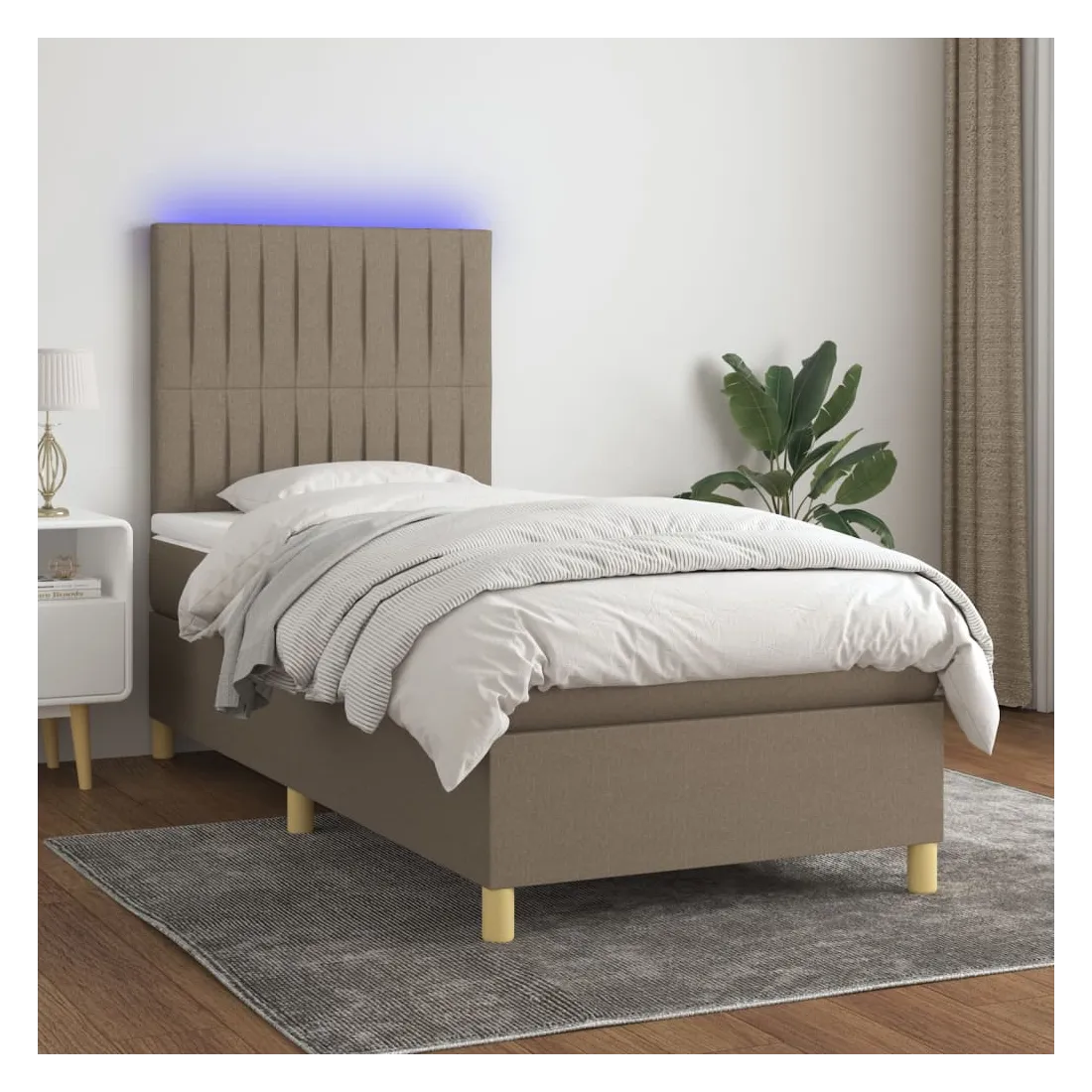 Utilisez ce sommier tapissier avec matelas et LED pour profiter d'un sommeil réparateur ! C'est le point central de votre chambre à coucher. Tissu durable : le tissu présente un aspect simple et épuré, et il est respirant et durable.Tête de lit pratique : la tête de lit est réglable en hauteur selon vos préférences. La tête de lit vous offre un excellent soutien du dos lorsque vous êtes assis dans votre lit pour lire ou regarder la télévision.Bande LED colorée : apportez de l'éclairage dans l'obscurité avec des lumières LED colorées !Matelas à ressorts ensachés : le ressort ensaché individuel intégré est connu pour sa très haute qualité tout en assurant un haut niveau de durabilité et d'adaptabilité. Il peut absorber efficacement le bruit et les chocs causés par les sauts et les rotations.Protège-matelas doux pour la peau : le protège-matelas est recouvert d'un tissu résistant et doux pour la peau, ce qui le rend souple et confortable. Remarque :Pour des raisons d'hygiène, le matelas ne peut pas être retourné si l'emballage est retiré ou ouvert.Seule la partie avec un symbole de ciseaux peut être coupée et seule la partie avec l'USB continuera à fonctionner comme avant.Chaque produit est livré avec un manuel de montage dans la boîte pour un montage facile.Ce produit est doté d'un connecteur USB, mais la source d'alimentation certifiée de USB 5V n'est pas incluse.