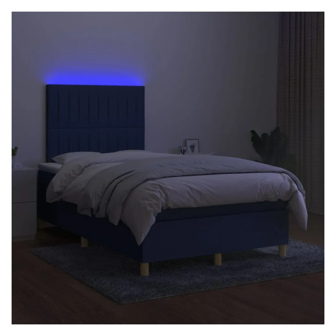 Sommier à lattes de lit et matelas et LED Bleu 120x200 cm Tissu