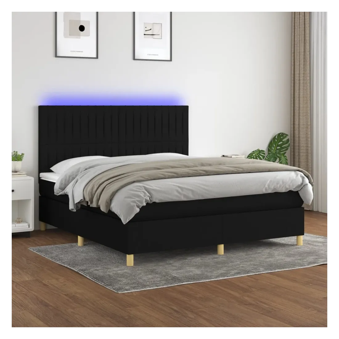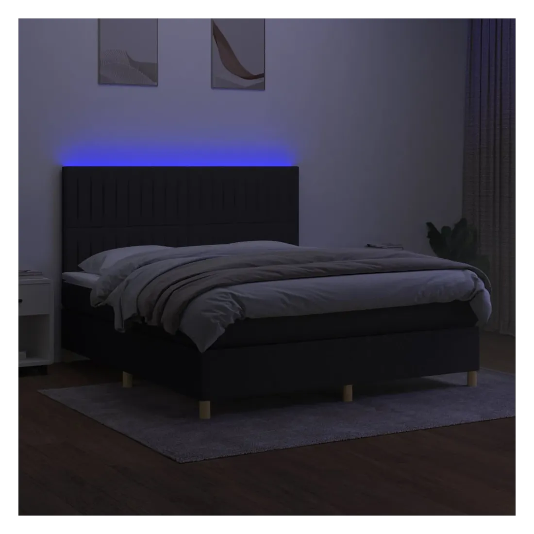 Utilisez ce sommier tapissier avec matelas et LED pour profiter d'un sommeil réparateur ! C'est le point central de votre chambre à coucher. Tissu durable : le tissu présente un aspect simple et épuré, et il est respirant et durable.Tête de lit pratique : la tête de lit est réglable en hauteur selon vos préférences. La tête de lit vous offre un excellent soutien du dos lorsque vous êtes assis dans votre lit pour lire ou regarder la télévision.Bande LED colorée : apportez de l'éclairage dans l'obscurité avec des lumières LED colorées !Matelas à ressorts ensachés : le ressort ensaché individuel intégré est connu pour sa très haute qualité tout en assurant un haut niveau de durabilité et d'adaptabilité. Il peut absorber efficacement le bruit et les chocs causés par les sauts et les rotations.Protège-matelas doux pour la peau : le protège-matelas est recouvert d'un tissu résistant et doux pour la peau, ce qui le rend souple et confortable. Remarque :Pour des raisons d'hygiène, le matelas ne peut pas être retourné si l'emballage est retiré ou ouvert.Seule la partie avec un symbole de ciseaux peut être coupée et seule la partie avec l'USB continuera à fonctionner comme avant.Chaque produit est livré avec un manuel de montage dans la boîte pour un montage facile.Ce produit est doté d'un connecteur USB, mais la source d'alimentation certifiée de USB 5V n'est pas incluse.