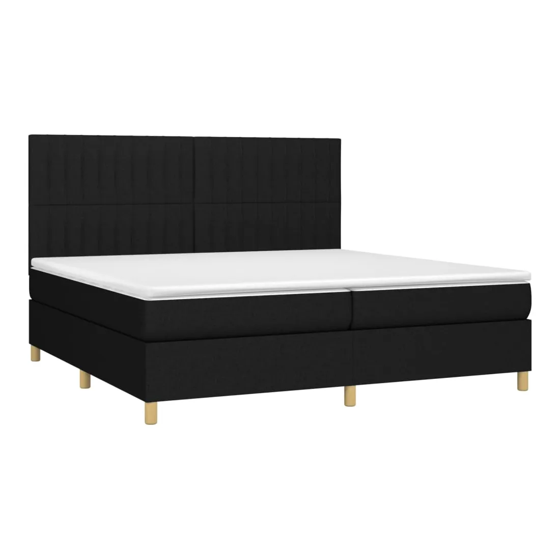 Sommier à lattes de lit et matelas et LED Noir 200x200 cm Tissu