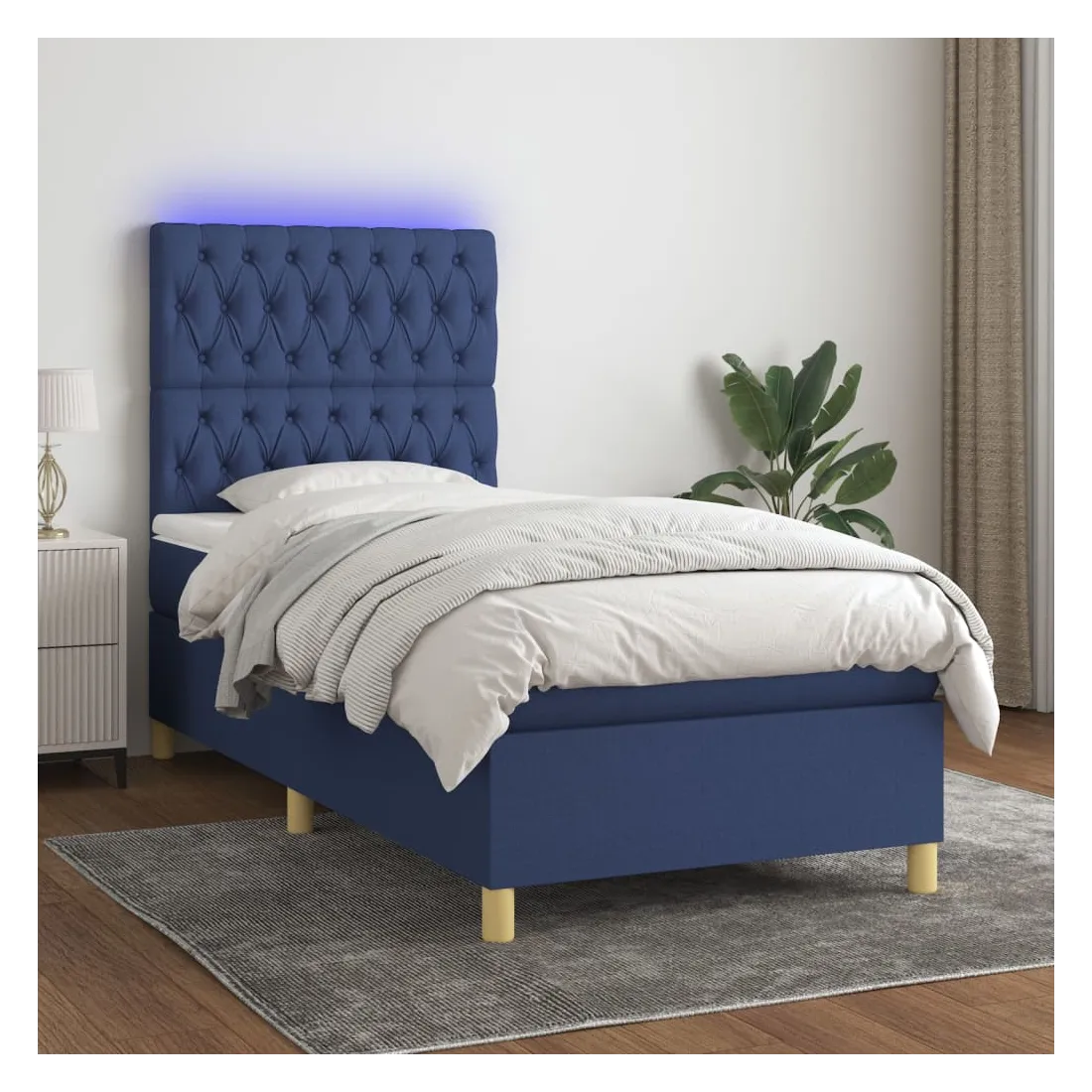 Utilisez ce sommier tapissier avec matelas et LED pour profiter d'un sommeil réparateur ! C'est le point central de votre chambre à coucher. Tissu durable : le tissu présente un aspect simple et épuré, et il est respirant et durable.Tête de lit pratique : la tête de lit est réglable en hauteur selon vos préférences. La tête de lit vous offre un excellent soutien du dos lorsque vous êtes assis dans votre lit pour lire ou regarder la télévision.Bande LED colorée : apportez de l'éclairage dans l'obscurité avec des lumières LED colorées !Matelas à ressorts ensachés : le ressort ensaché individuel intégré est connu pour sa très haute qualité tout en assurant un haut niveau de durabilité et d'adaptabilité. Il peut absorber efficacement le bruit et les chocs causés par les sauts et les rotations.Protège-matelas doux pour la peau : le protège-matelas est recouvert d'un tissu résistant et doux pour la peau, ce qui le rend souple et confortable. Remarque :Pour des raisons d'hygiène, le matelas ne peut pas être retourné si l'emballage est retiré ou ouvert.Seule la partie avec un symbole de ciseaux peut être coupée et seule la partie avec l'USB continuera à fonctionner comme avant.Chaque produit est livré avec un manuel de montage dans la boîte pour un montage facile.Ce produit est doté d'un connecteur USB, mais la source d'alimentation certifiée de USB 5V n'est pas incluse.