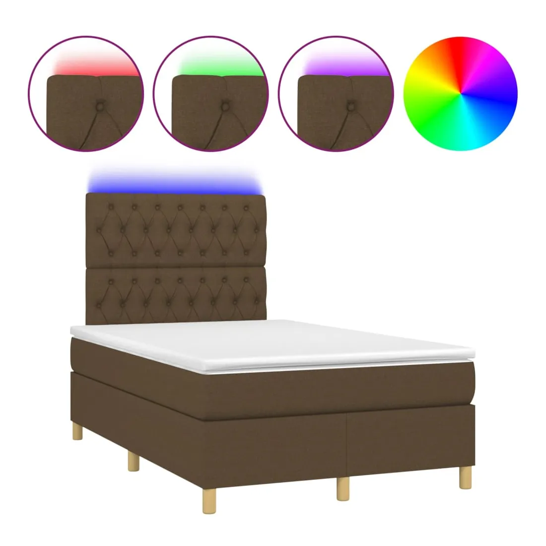 Sommier à lattes de lit matelas et LED Marron foncé 120x200 cm