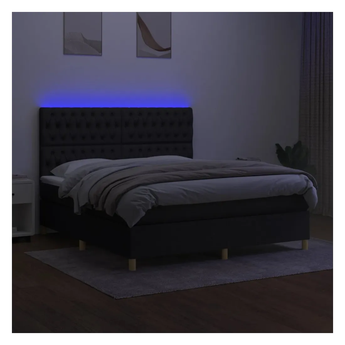Sommier à lattes de lit et matelas et LED Noir 160x200 cm Tissu