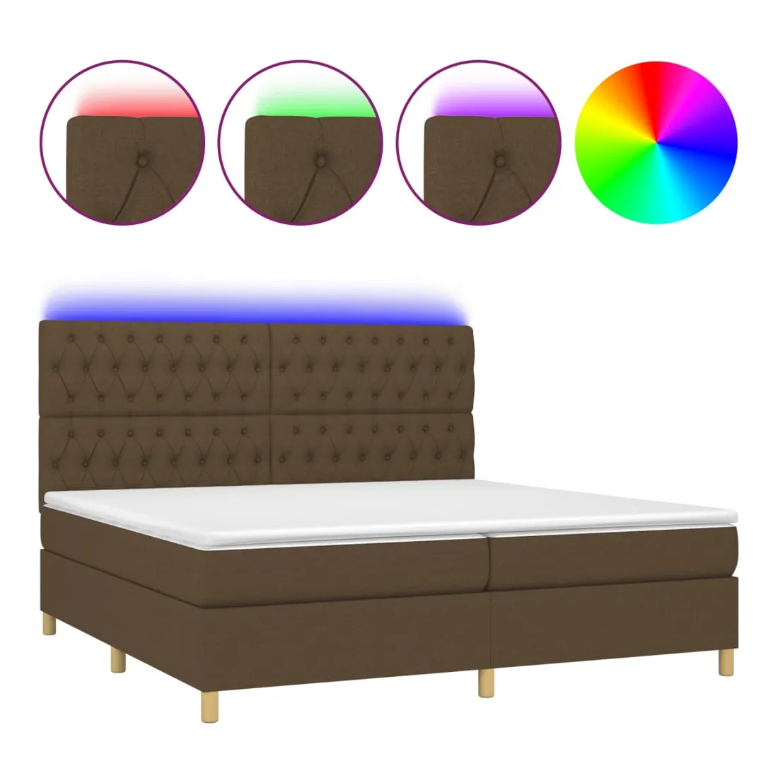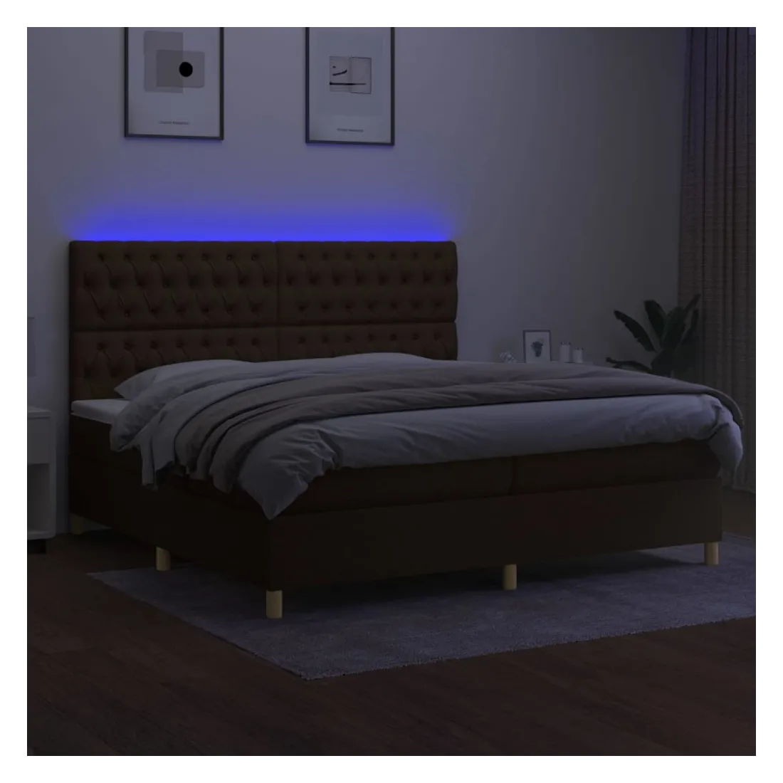 Utilisez ce sommier tapissier avec matelas et LED pour profiter d'un sommeil réparateur ! C'est le point central de votre chambre à coucher. Tissu durable : le tissu présente un aspect simple et épuré, et il est respirant et durable.Tête de lit pratique : la tête de lit est réglable en hauteur selon vos préférences. La tête de lit vous offre un excellent soutien du dos lorsque vous êtes assis dans votre lit pour lire ou regarder la télévision.Bande LED colorée : apportez de l'éclairage dans l'obscurité avec des lumières LED colorées !Matelas à ressorts ensachés : le ressort ensaché individuel intégré est connu pour sa très haute qualité tout en assurant un haut niveau de durabilité et d'adaptabilité. Il peut absorber efficacement le bruit et les chocs causés par les sauts et les rotations.Protège-matelas doux pour la peau : le protège-matelas est recouvert d'un tissu résistant et doux pour la peau, ce qui le rend souple et confortable. Remarque :Pour des raisons d'hygiène, le matelas ne peut pas être retourné si l'emballage est retiré ou ouvert.Seule la partie avec un symbole de ciseaux peut être coupée et seule la partie avec l'USB continuera à fonctionner comme avant.Chaque produit est livré avec un manuel de montage dans la boîte pour un montage facile.Ce produit est doté d'un connecteur USB, mais la source d'alimentation certifiée de USB 5V n'est pas incluse.