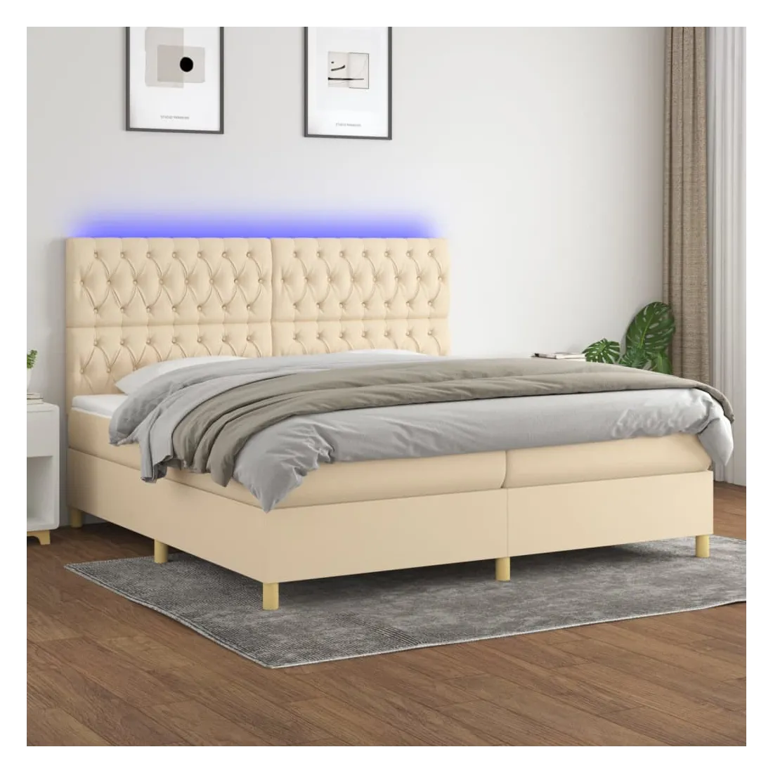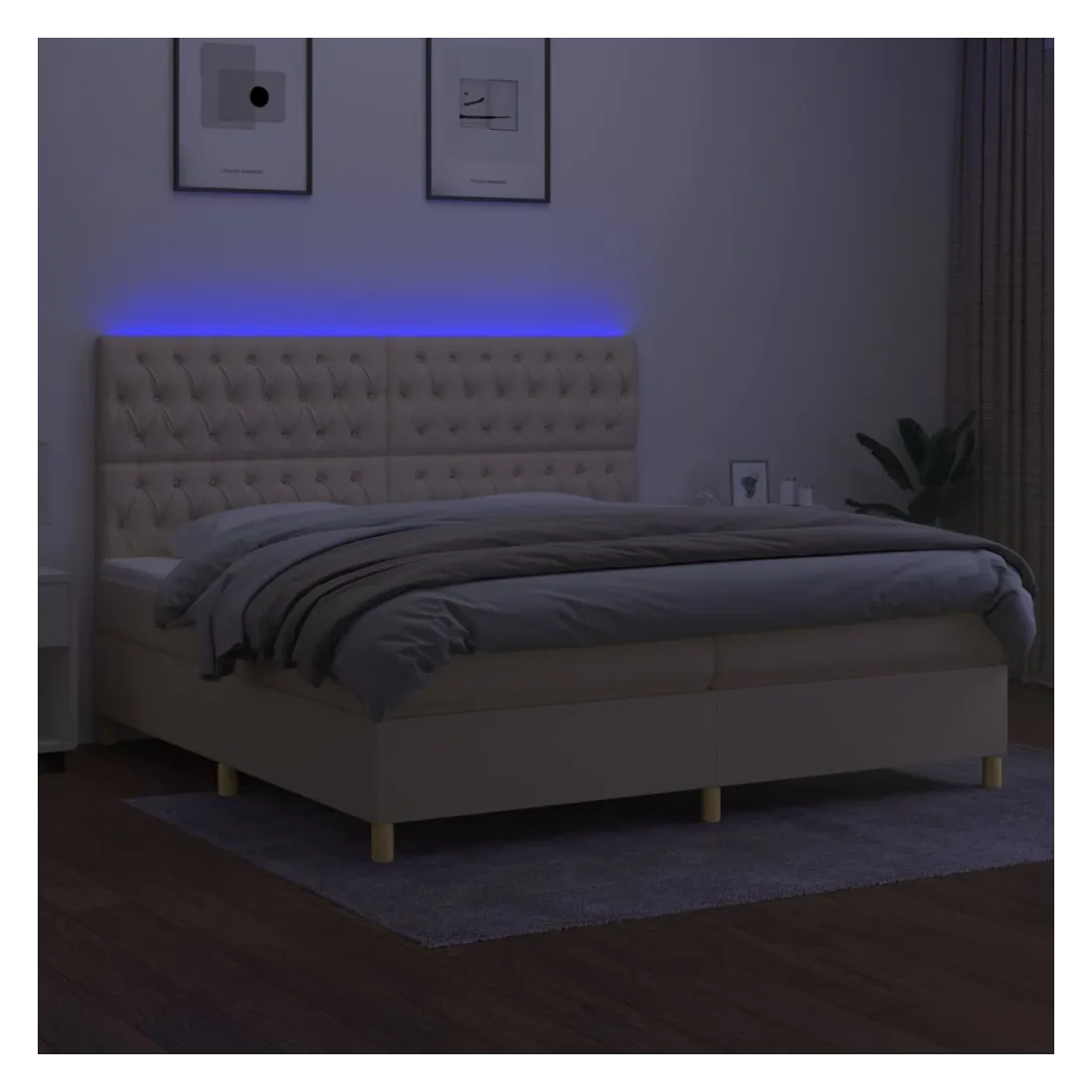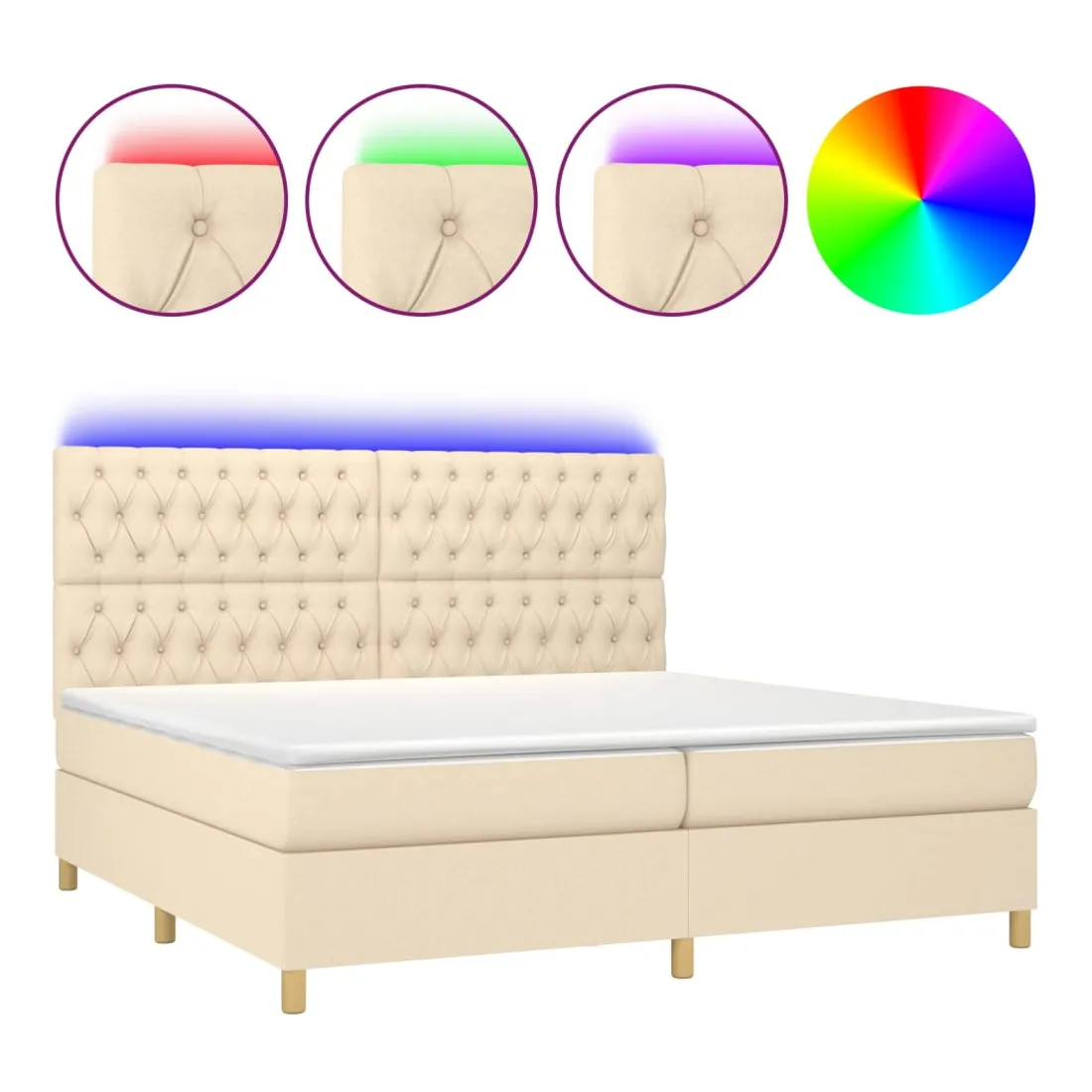 Utilisez ce sommier tapissier avec matelas et LED pour profiter d'un sommeil réparateur ! C'est le point central de votre chambre à coucher. Tissu durable : le tissu présente un aspect simple et épuré, et il est respirant et durable.Tête de lit pratique : la tête de lit est réglable en hauteur selon vos préférences. La tête de lit vous offre un excellent soutien du dos lorsque vous êtes assis dans votre lit pour lire ou regarder la télévision.Bande LED colorée : apportez de l'éclairage dans l'obscurité avec des lumières LED colorées !Matelas à ressorts ensachés : le ressort ensaché individuel intégré est connu pour sa très haute qualité tout en assurant un haut niveau de durabilité et d'adaptabilité. Il peut absorber efficacement le bruit et les chocs causés par les sauts et les rotations.Protège-matelas doux pour la peau : le protège-matelas est recouvert d'un tissu résistant et doux pour la peau, ce qui le rend souple et confortable. Remarque :Pour des raisons d'hygiène, le matelas ne peut pas être retourné si l'emballage est retiré ou ouvert.Seule la partie avec un symbole de ciseaux peut être coupée et seule la partie avec l'USB continuera à fonctionner comme avant.Chaque produit est livré avec un manuel de montage dans la boîte pour un montage facile.Ce produit est doté d'un connecteur USB, mais la source d'alimentation certifiée de USB 5V n'est pas incluse.