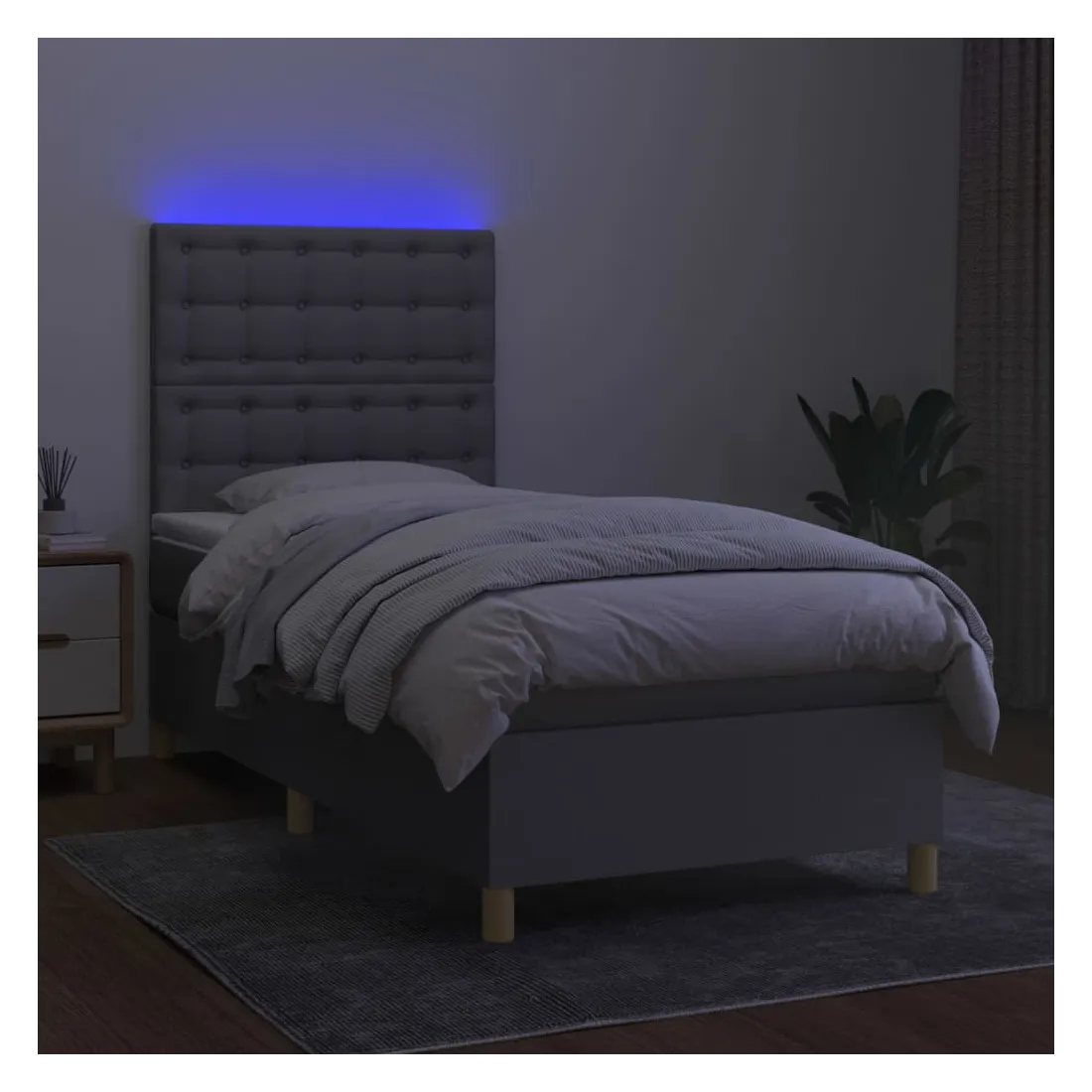 Utilisez ce sommier tapissier avec matelas et LED pour profiter d'un sommeil réparateur ! C'est le point central de votre chambre à coucher. Tissu durable : le tissu présente un aspect simple et épuré, et il est respirant et durable.Tête de lit pratique : la tête de lit est réglable en hauteur selon vos préférences. La tête de lit vous offre un excellent soutien du dos lorsque vous êtes assis dans votre lit pour lire ou regarder la télévision.Bande LED colorée : apportez de l'éclairage dans l'obscurité avec des lumières LED colorées !Matelas à ressorts ensachés : le ressort ensaché individuel intégré est connu pour sa très haute qualité tout en assurant un haut niveau de durabilité et d'adaptabilité. Il peut absorber efficacement le bruit et les chocs causés par les sauts et les rotations.Protège-matelas doux pour la peau : le protège-matelas est recouvert d'un tissu résistant et doux pour la peau, ce qui le rend souple et confortable. Remarque :Pour des raisons d'hygiène, le matelas ne peut pas être retourné si l'emballage est retiré ou ouvert.Seule la partie avec un symbole de ciseaux peut être coupée et seule la partie avec l'USB continuera à fonctionner comme avant.Chaque produit est livré avec un manuel de montage dans la boîte pour un montage facile.Ce produit est doté d'un connecteur USB, mais la source d'alimentation certifiée de USB 5V n'est pas incluse.