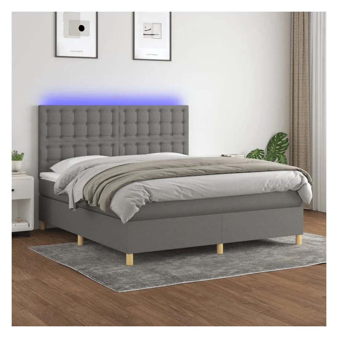 Utilisez ce sommier tapissier avec matelas et LED pour profiter d'un sommeil réparateur ! C'est le point central de votre chambre à coucher. Tissu durable : le tissu présente un aspect simple et épuré, et il est respirant et durable. Tête de lit pratique : la tête de lit est réglable en hauteur selon vos préférences. La tête de lit vous offre un excellent soutien du dos lorsque vous êtes assis dans votre lit pour lire ou regarder la télévision. Bande LED colorée : apportez de l'éclairage dans l'obscurité avec des lumières LED colorées ! Matelas à ressorts ensachés : le ressort ensaché individuel intégré est connu pour sa très haute qualité tout en assurant un haut niveau de durabilité et d'adaptabilité. Il peut absorber efficacement le bruit et les chocs causés par les sauts et les rot