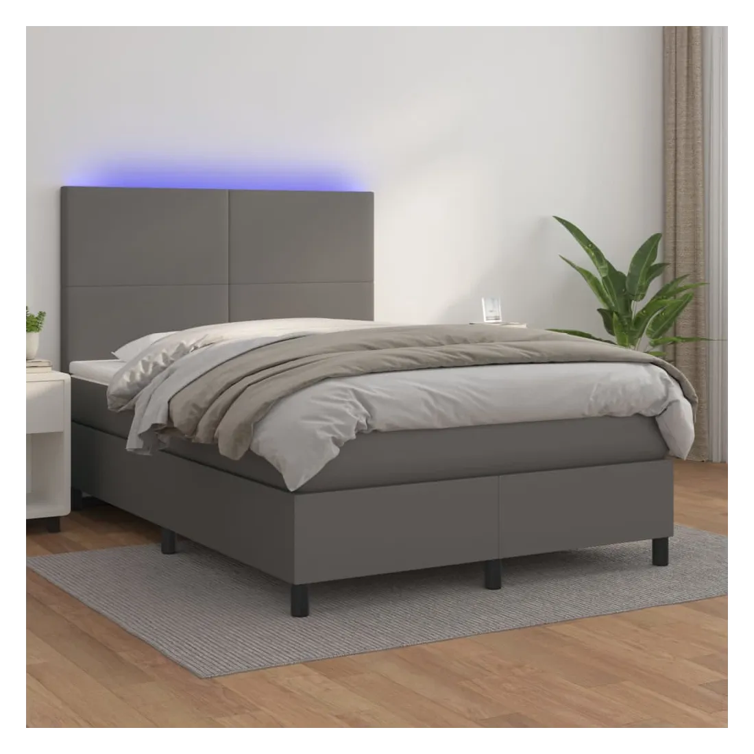 Utilisez ce sommier tapissier avec matelas et LED pour profiter d'un sommeil réparateur ! C'est le point central de votre chambre à coucher. Similicuir durable : le similicuir de qualité supérieure est un matériau très durable. Il est résistant aux taches, ce qui le rend facile à nettoyer avec un chiffon humide. La surface lisse donne également un aspect luxueux et la beauté du cuir véritable.Tête de lit pratique : la tête de lit est réglable en hauteur selon vos préférences. La tête de lit vous offre un excellent soutien du dos lorsque vous êtes assis dans votre lit pour lire ou regarder la télévision.Bande LED colorée : apportez de l'éclairage dans l'obscurité avec des lumières LED colorées !Matelas à ressorts ensachés : le ressort ensaché individuel intégré est connu pour sa très haute qualité tout en assurant un haut niveau de durabilité et d'adaptabilité. Il peut absorber efficacement le bruit et les chocs causés par les sauts et les rotations.Protège-matelas doux pour la peau : le protège-matelas est recouvert d'un tissu résistant et doux pour la peau, ce qui le rend souple et confortable. Remarque :Pour des raisons d'hygiène, le matelas ne peut pas être retourné si l'emballage est retiré ou ouvert.Seule la partie avec un symbole de ciseaux peut être coupée et seule la partie avec l'USB continuera à fonctionner comme avant.Chaque produit est livré avec un manuel de montage dans la boîte pour un montage facile.Ce produit est doté d'un connecteur USB, mais la source d'alimentation certifiée de USB 5V n'est pas incluse.